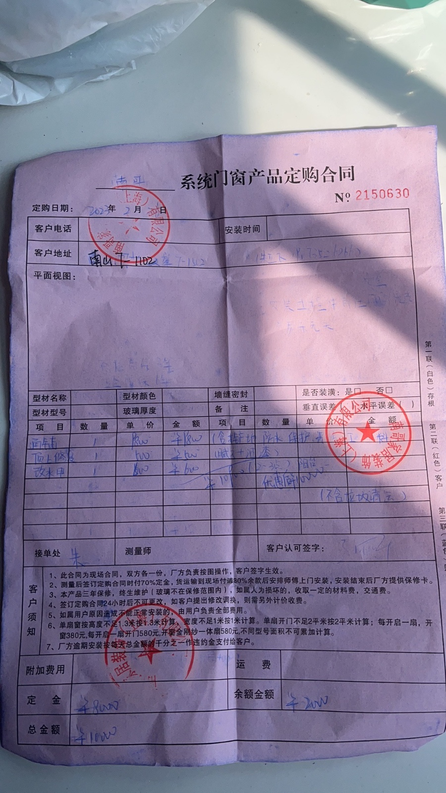 利用其他公司系統(tǒng)門窗合同替代改公司合同