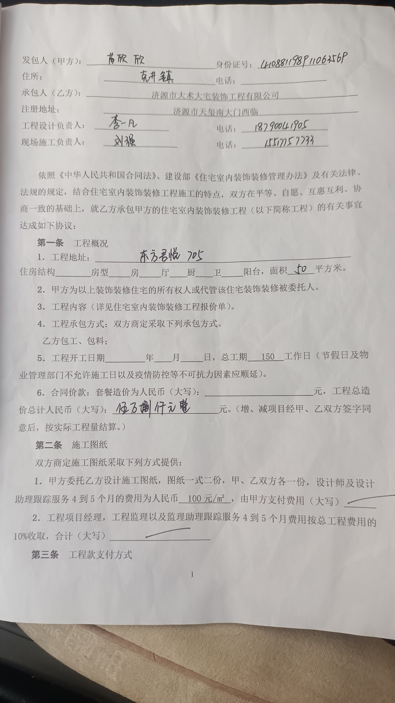 | 裝修面積 | 50m2 | 投訴人手機 | 1503917**** | 被投訴人手機 | 1780381**** |