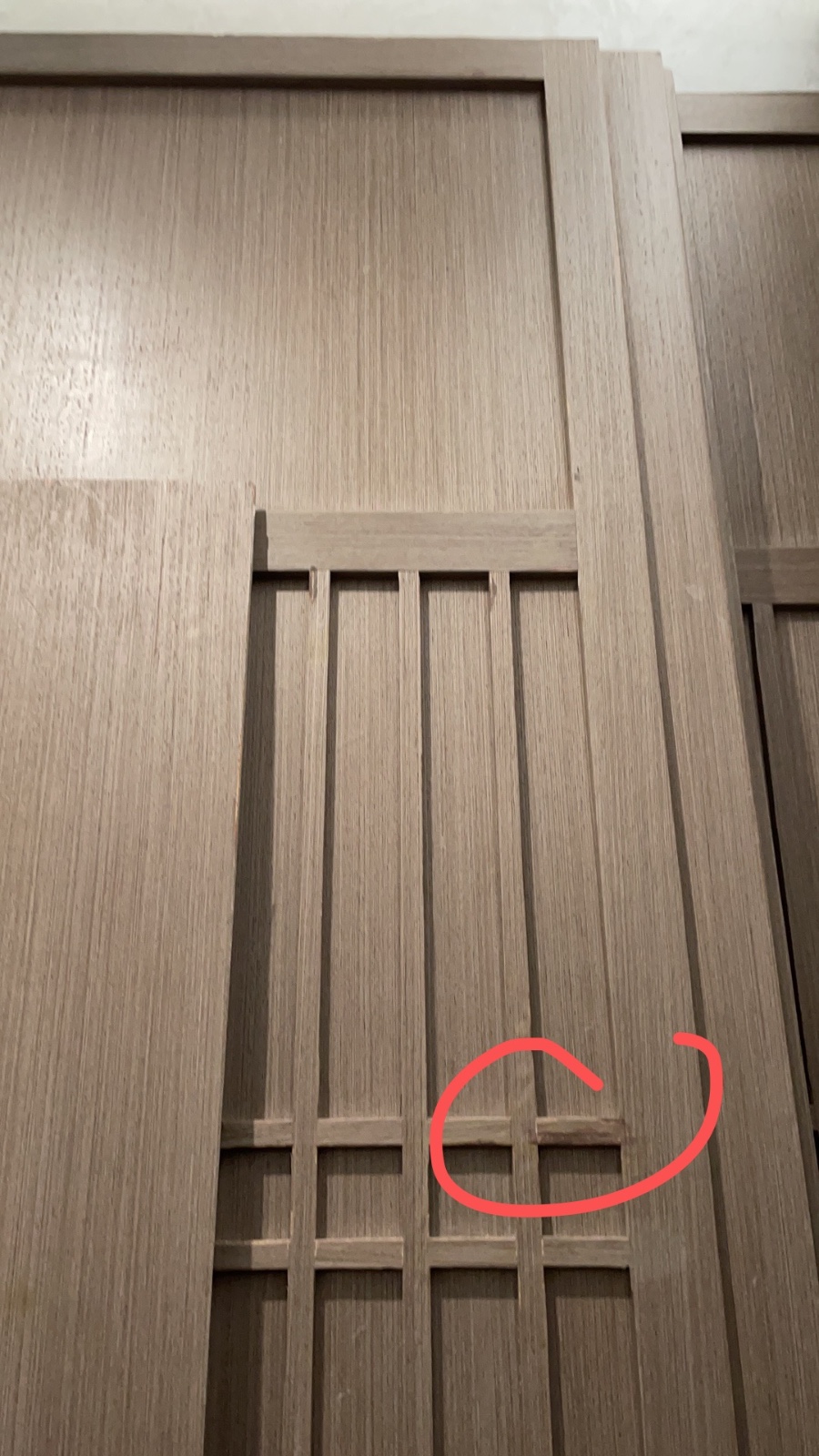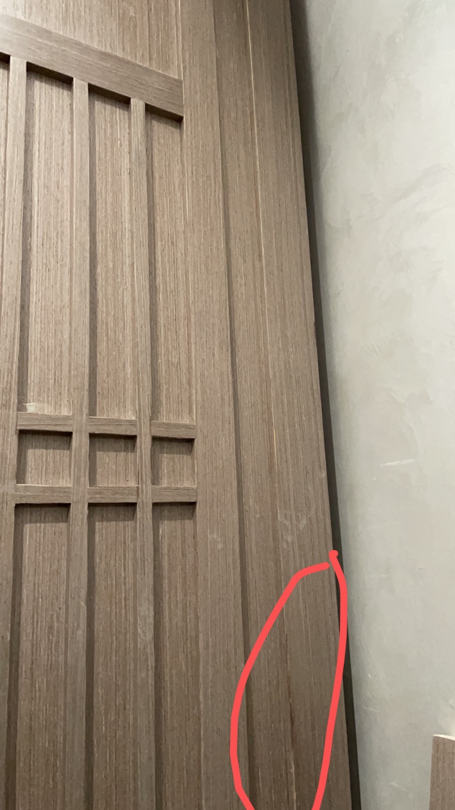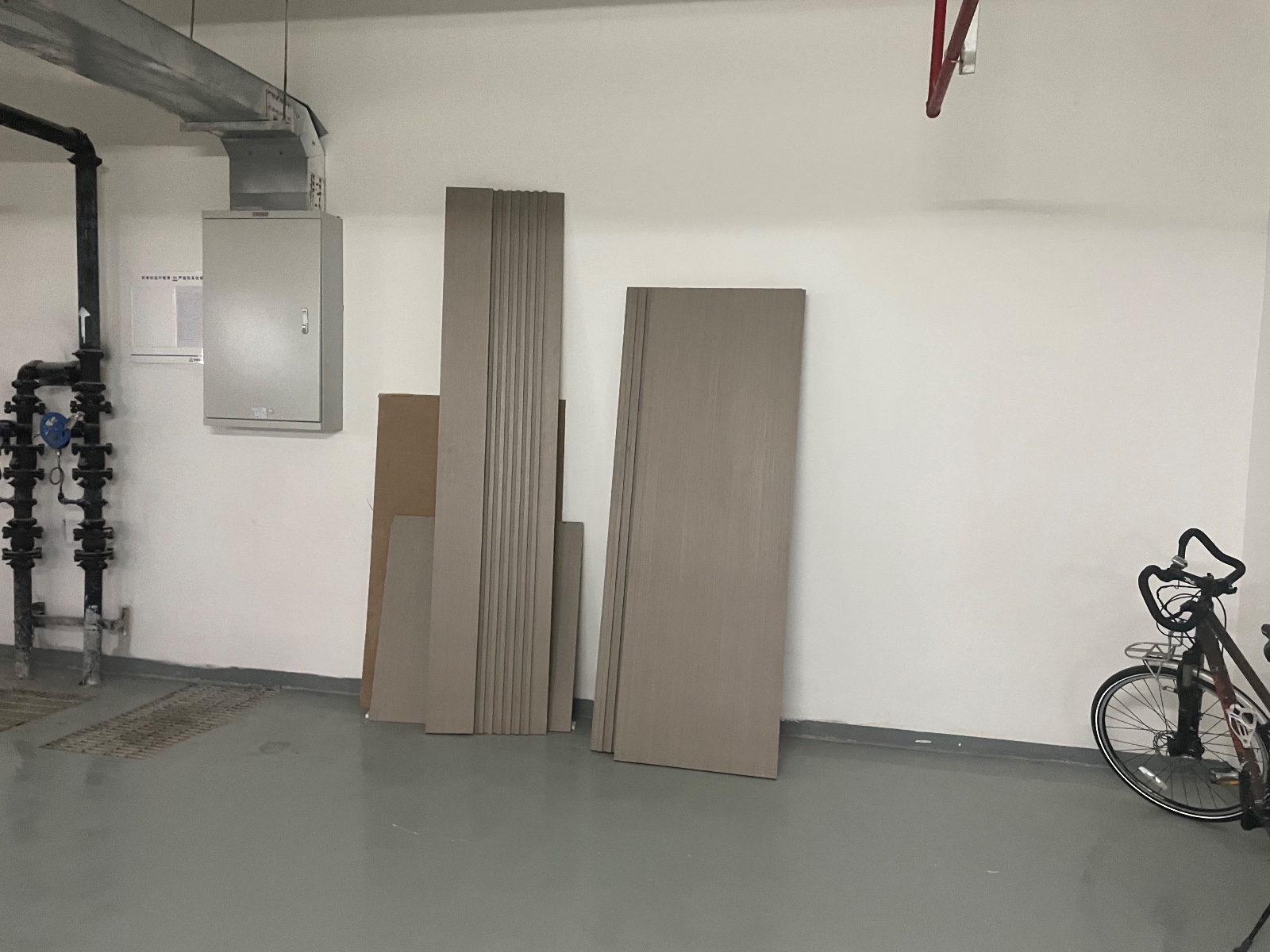 留在我家地下車庫電梯旁的密度板隱形門木飾面板等材料