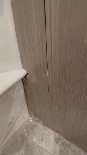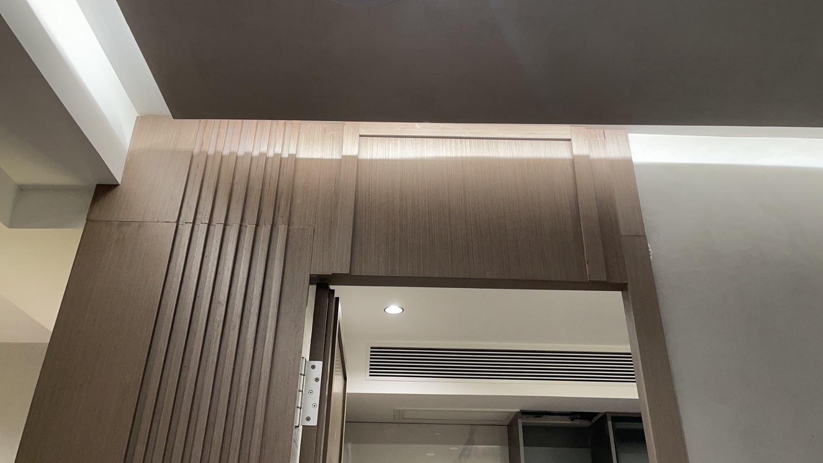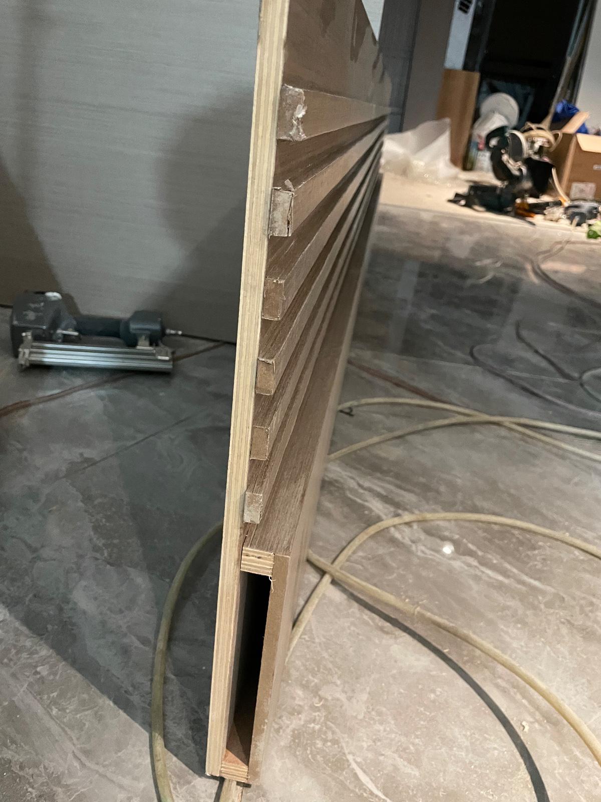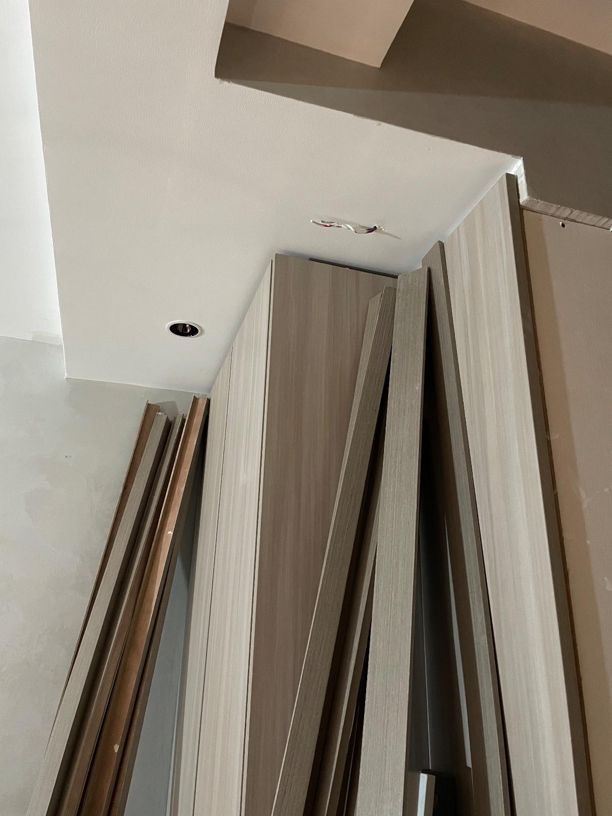 留在我家地下車庫電梯旁的密度板隱形門木飾面板等材料