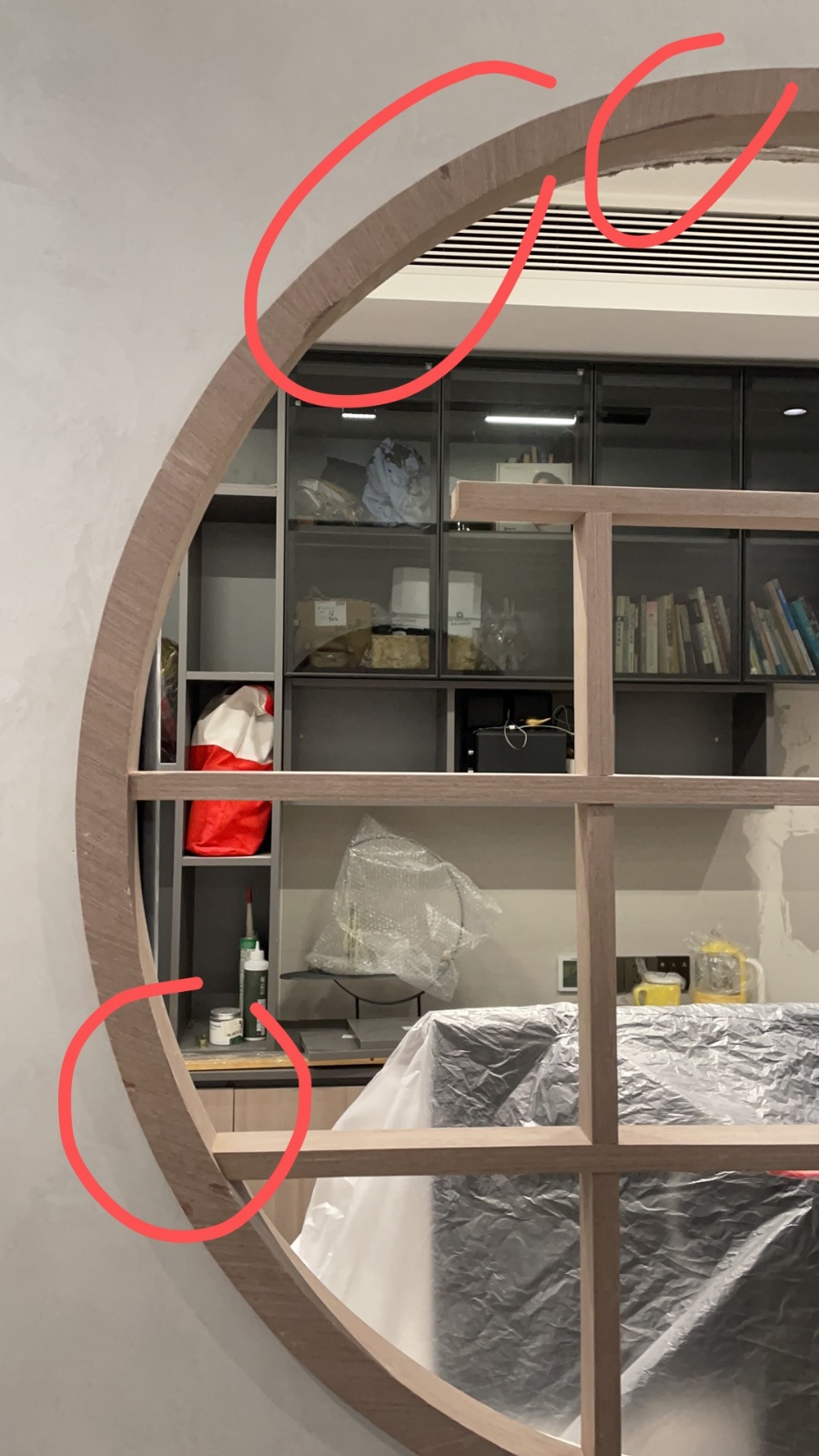 書房圓窗木皮和油漆問題,與墻縫隙巨大未處理