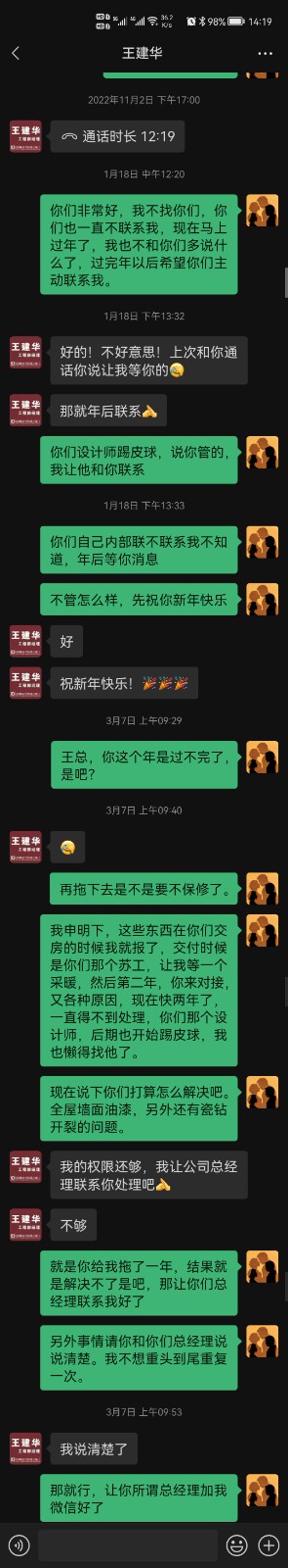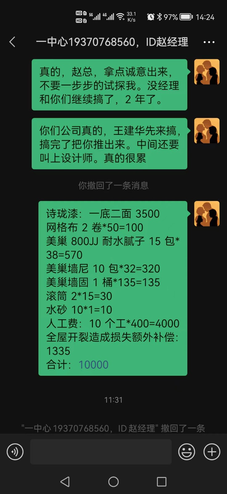 老師很熱心,我在裝修公司找我協(xié)商時沒有添加老師微信,老師主動聯(lián)系了我,并希望我的問題能得到解決