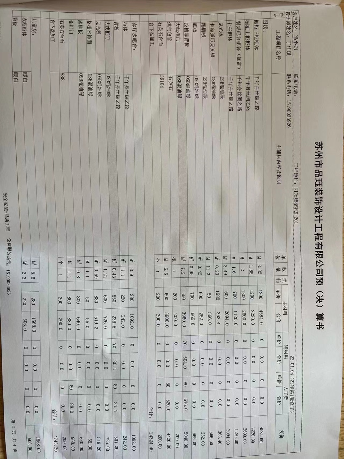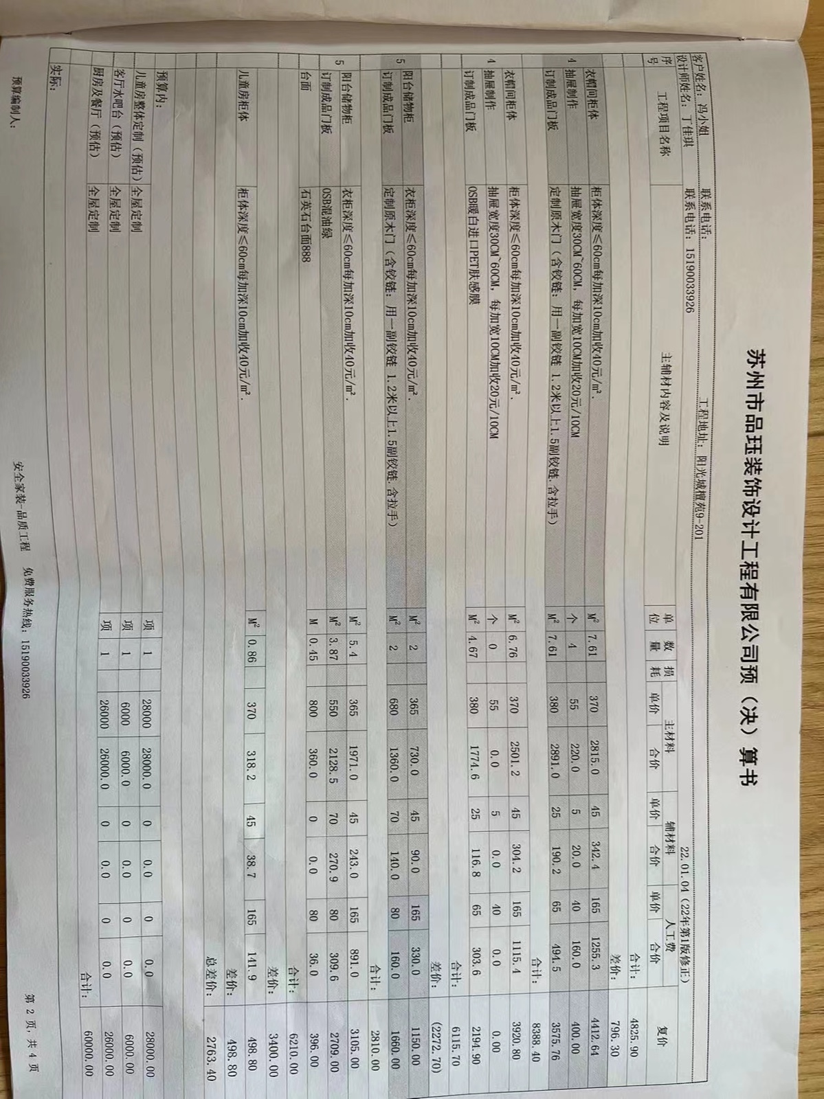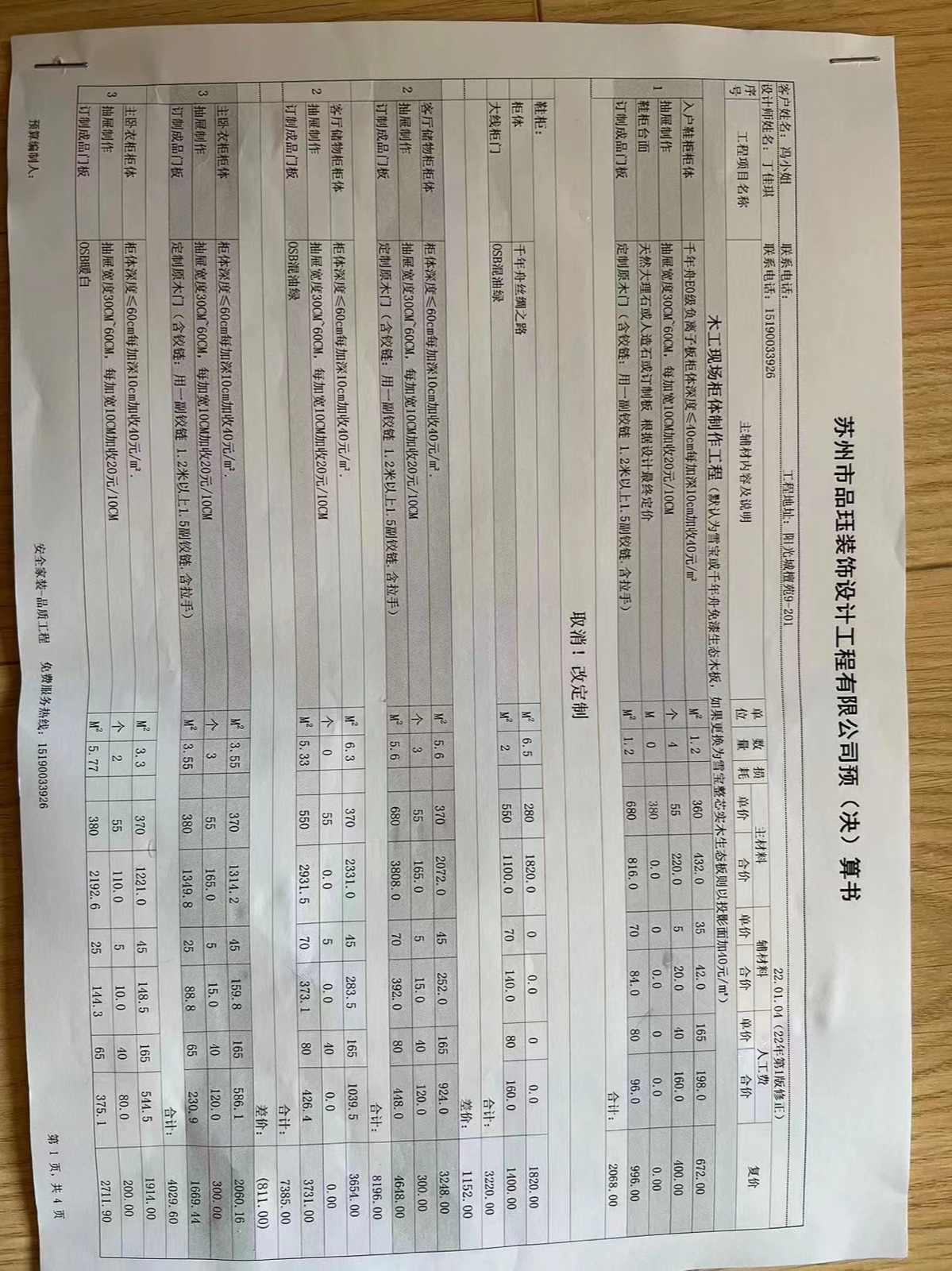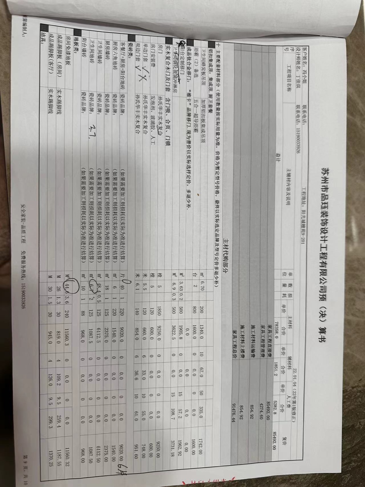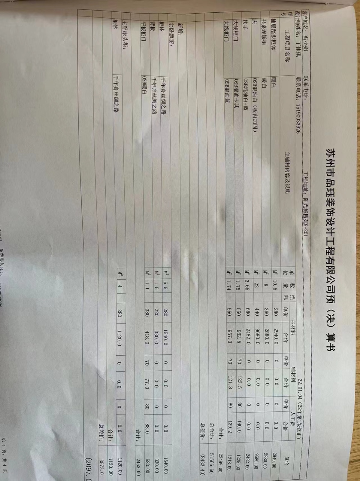 重新計算差價,原木和歐松板材料差價的報價單,最終10萬家具只計算出2097元差價