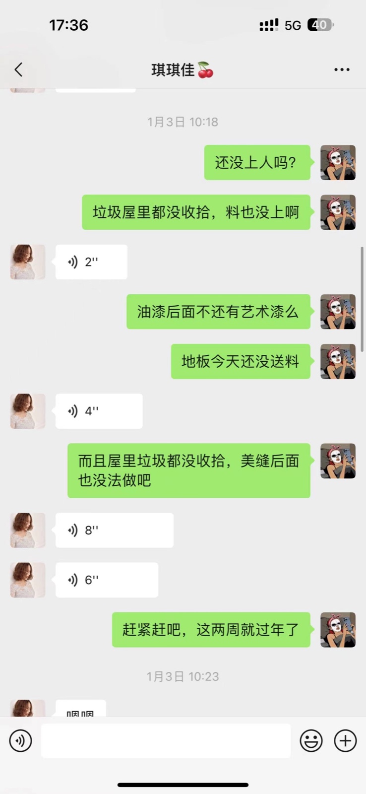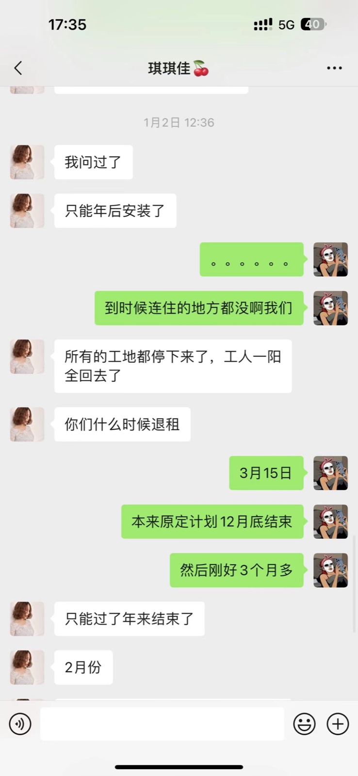 2. 工期拖延近4個月,尾活不管了,玻璃移門、智能系統(tǒng)、櫥柜少的抽屜等都未完工