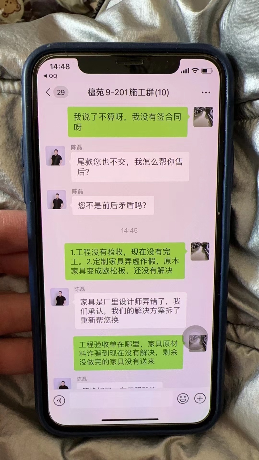 工程未驗收,未完工時候,因討論板材造假問題,拒絕收尾
