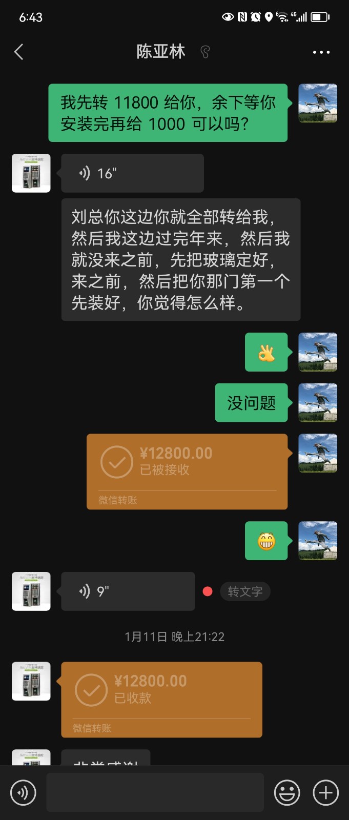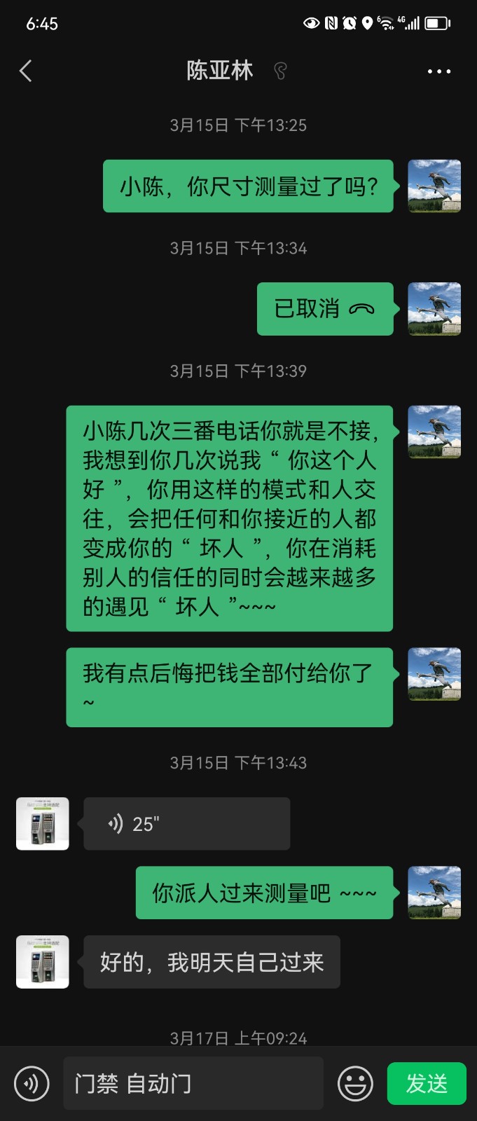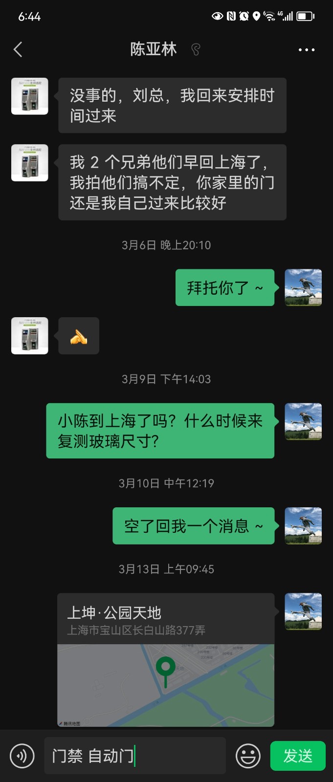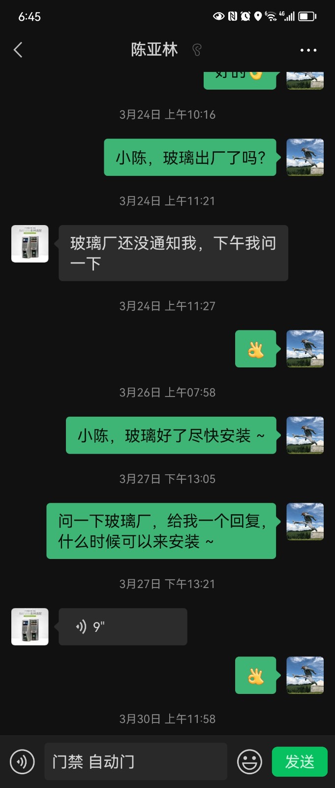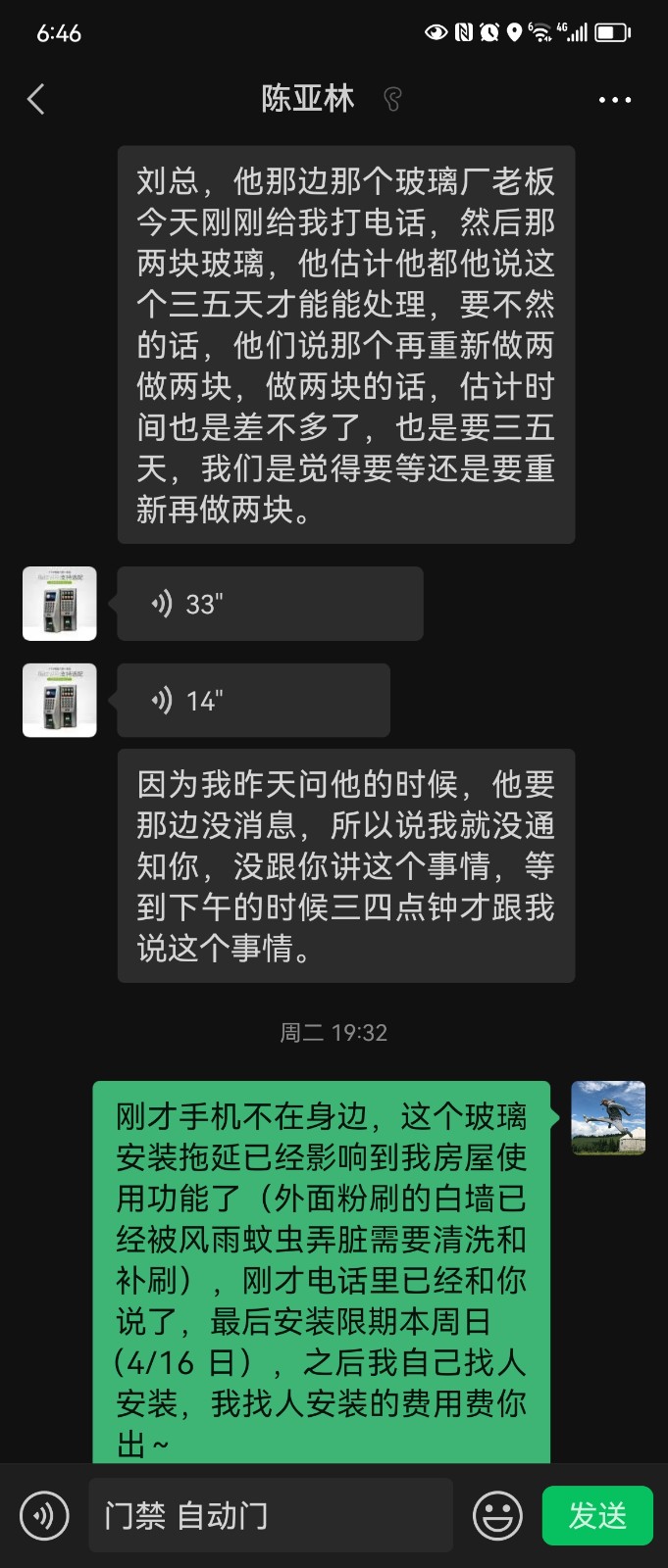 投訴之后第二天,電話聯(lián)系我和監(jiān)理,一周后來安裝玻璃,二周后完成調(diào)試。