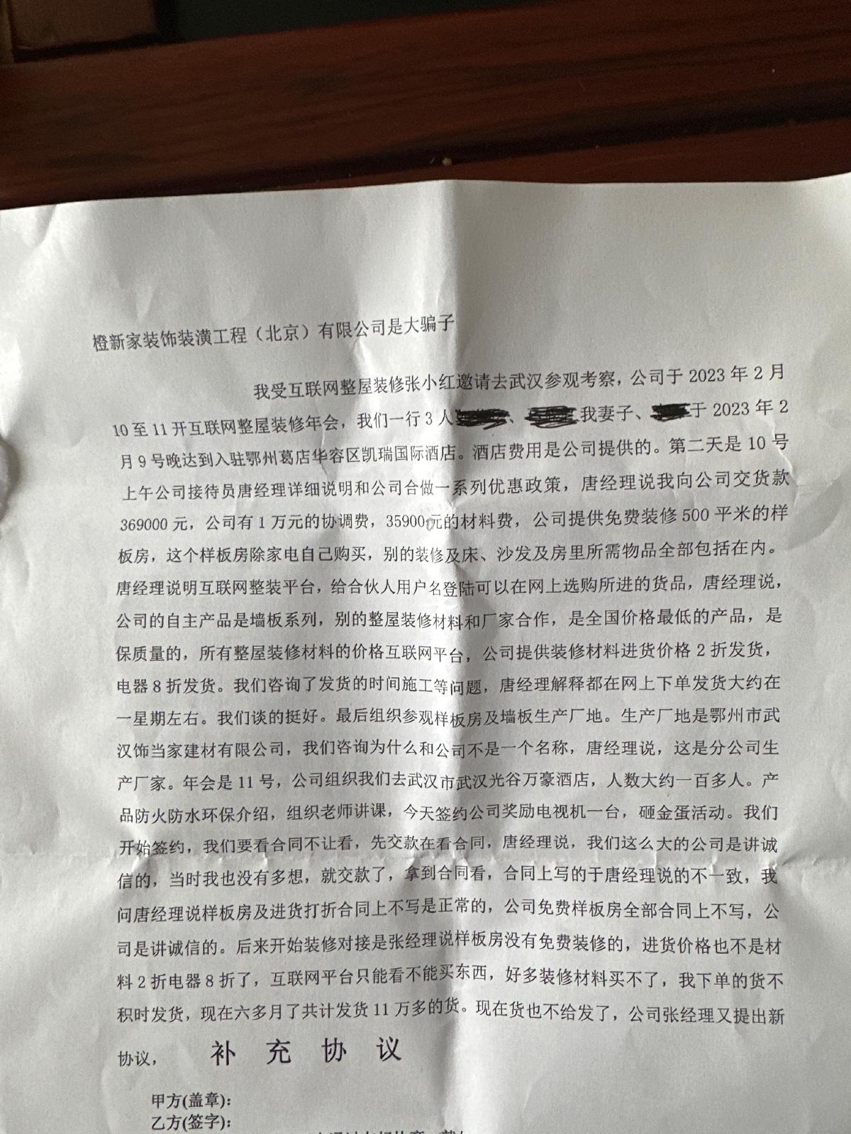 | 投訴類型 | 合同糾紛 | 投訴人 | 沈** | 被投訴單位 | 橙新家裝飾裝潢工程(北京)有限公司 |
