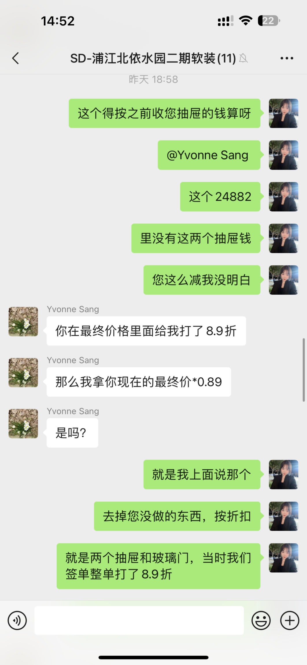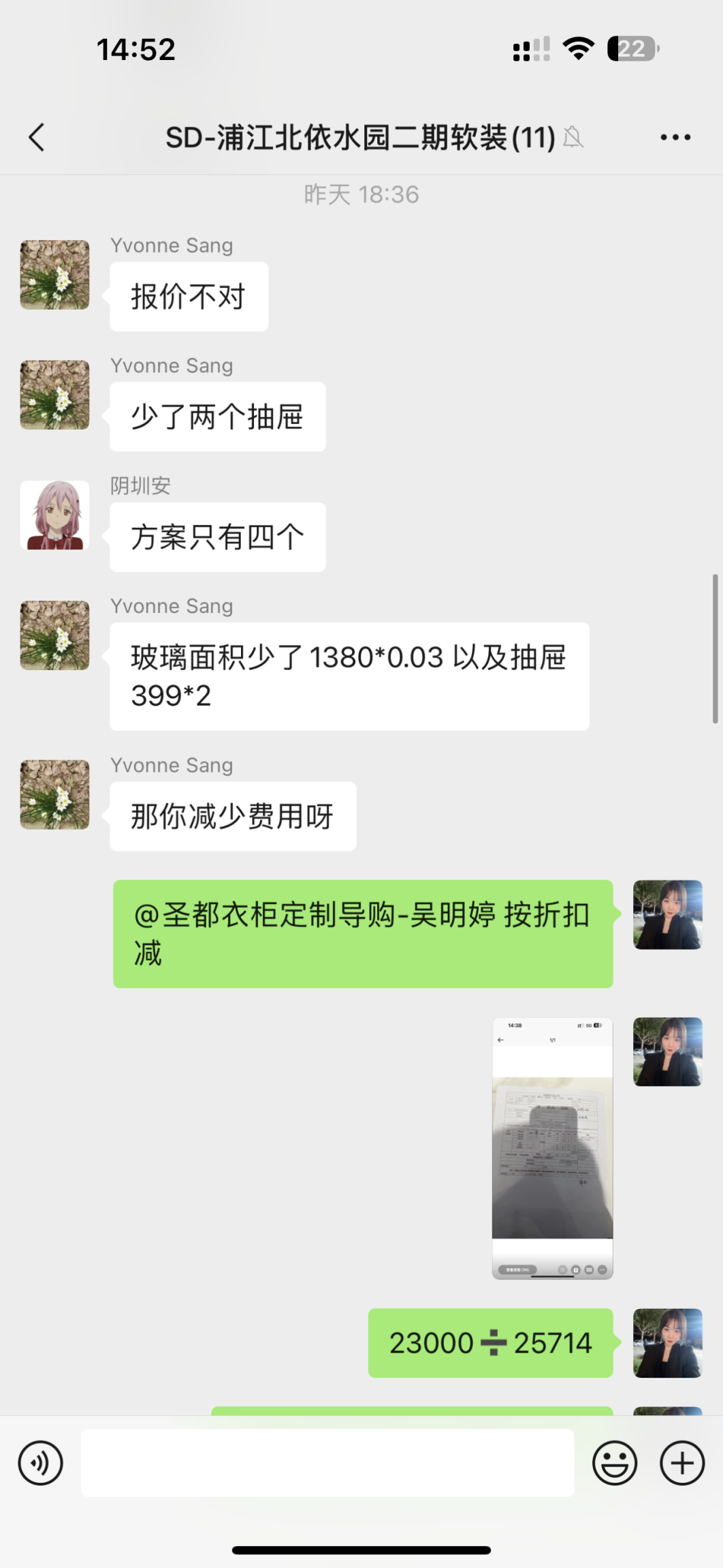 1 效率差: 前一天業(yè)主已經(jīng)確認(rèn)設(shè)計(jì)方案,等了一整天,在反復(fù)催促下,到下午的6點(diǎn)多才更新報(bào)價(jià)。