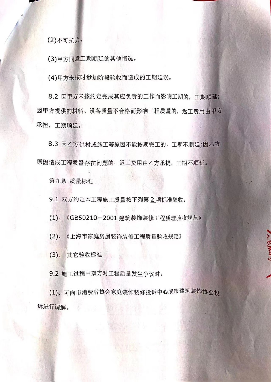 裝修公司(珮柏(上海)設(shè)計(jì)裝飾工程有限公司)與我在2022年3月8日簽署家庭裝修裝飾工程施工合同,原定2022年3月11日開(kāi)始施工,因上海疫情封控導(dǎo)致至2022年6月9日正式施工,按照合同因不可抗力可延后工期,合同簽署施工期限為100天,應(yīng)2022年9月17日為竣工日期。