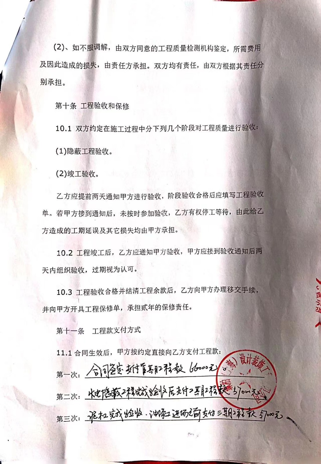 2、裝修公司未完成的部分已找其他工人繼續(xù)完成,支付我所有的費(fèi)用(有收據(jù))