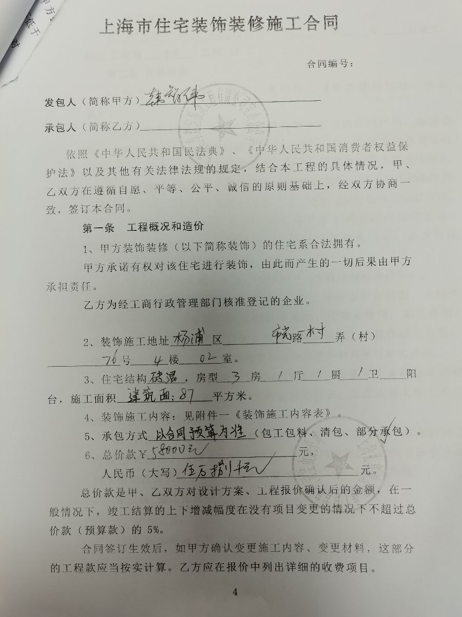 裝修公司預(yù)算惡意漏項,你一簽合同預(yù)算就此消失,工頭面目憎獰的你談增項。他們大多用假名??磥砗灪贤斑€要核對名字和身份證去趟派出所。他們都是老騙子了。所以在簽合同前就要請好監(jiān)理為你排雷。