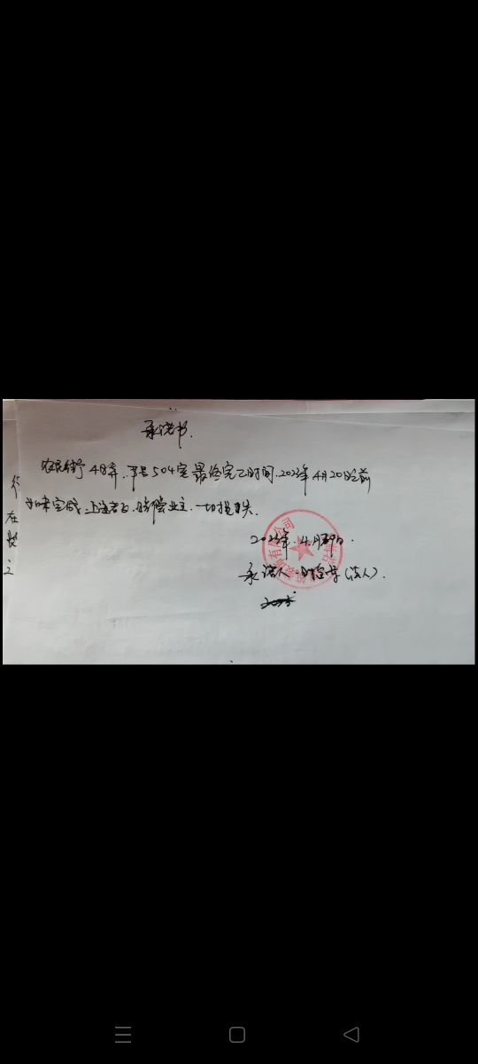 在4月份時(shí)金軍老板向我承諾4月20號前最終完工,但至今未例行承諾。