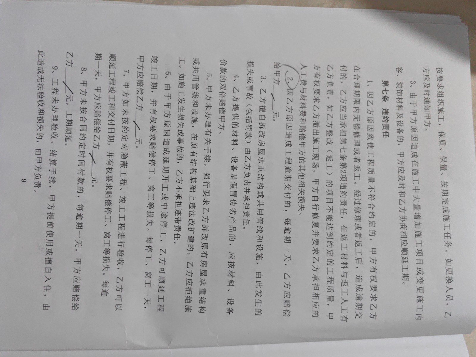 5;我們說(shuō)的是3個(gè)月,沒(méi)注意看簽的90個(gè)工作日,除去雙休日,節(jié)假日以外,也就是2月23日到期現(xiàn)在已經(jīng)快6月份了只做到了第二步還沒(méi)有驗(yàn)收通過(guò),衛(wèi)生間漏水一直修不好……因?yàn)樗馄诘馁M(fèi)用合同上那里被他們劃掉了,他們是慣犯我們新手小白真的欲哭無(wú)淚