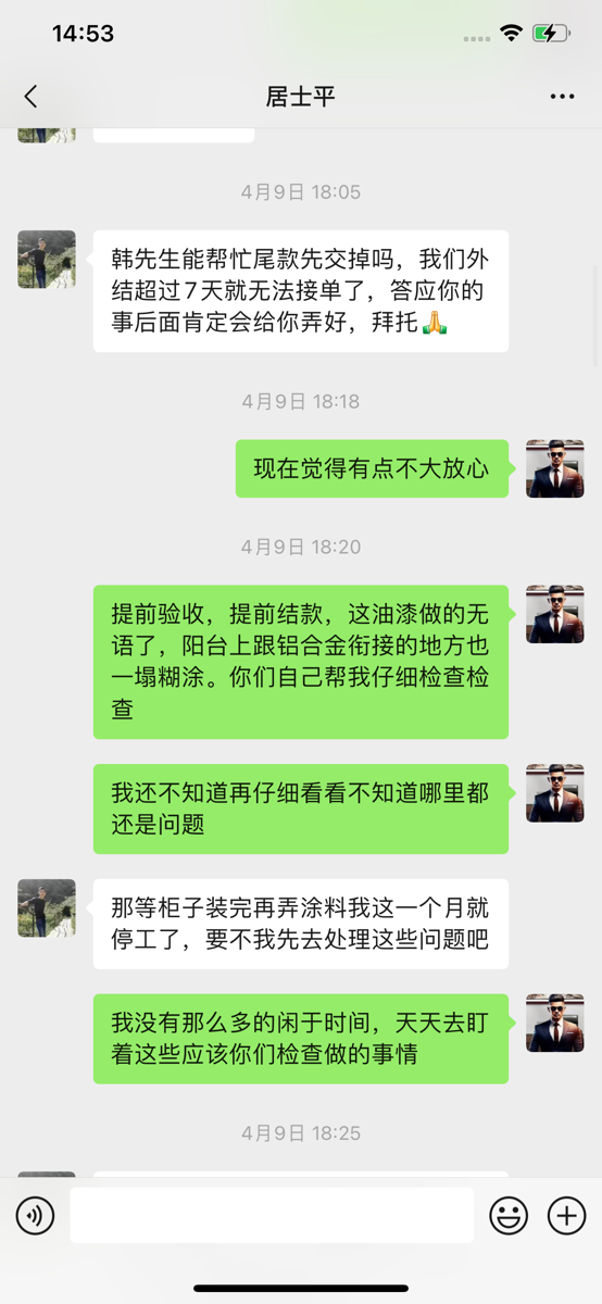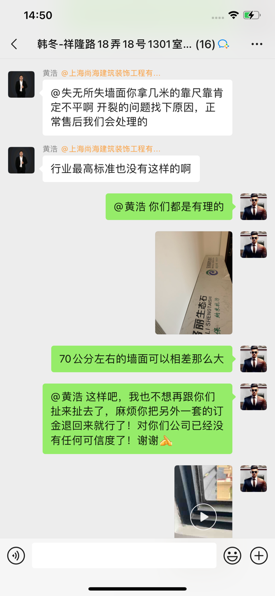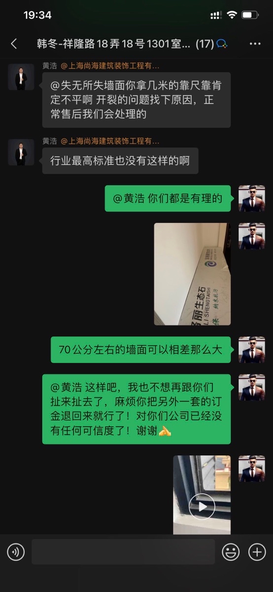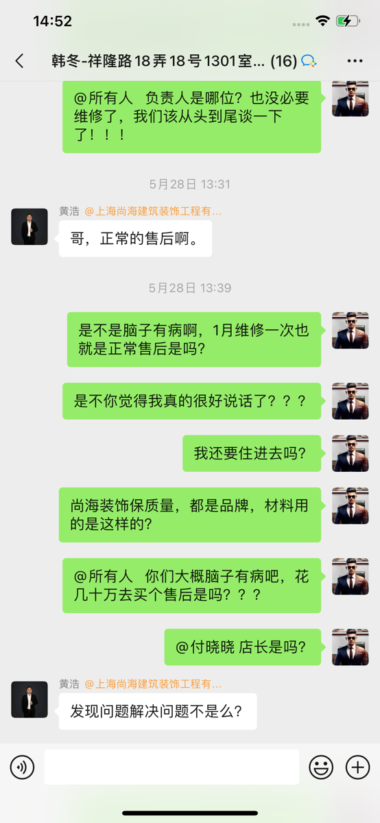 | 投訴類型 | 施工質(zhì)量 | 投訴人 | 韓** | 被投訴單位 | 上海尚海建筑裝飾工程有限公司 |
