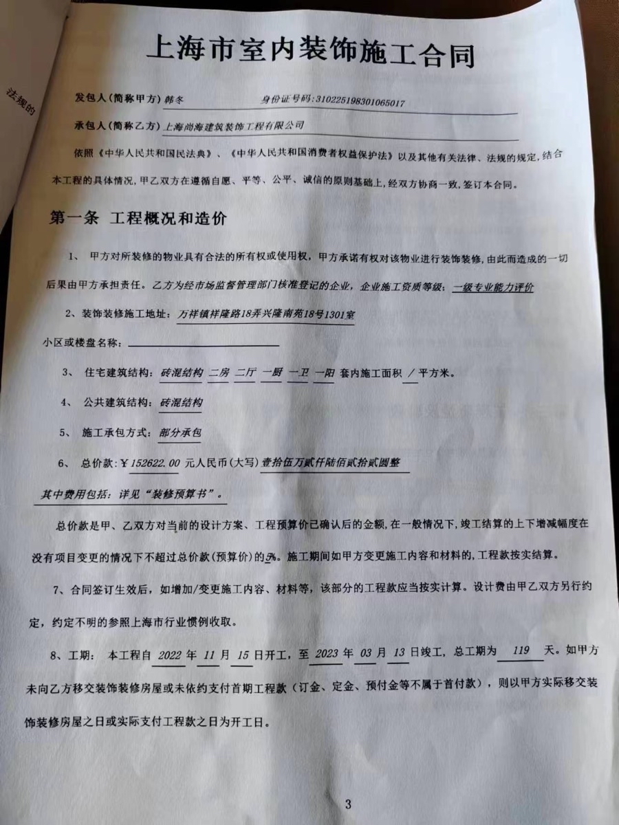 | 房型 | 兩房 | 聯(lián)系地址 | 上海市浦東新區(qū)萬(wàn)祥鎮(zhèn)祥隆路**弄****** | 項(xiàng)目負(fù)責(zé)人 | 付興貴 |