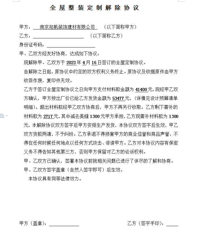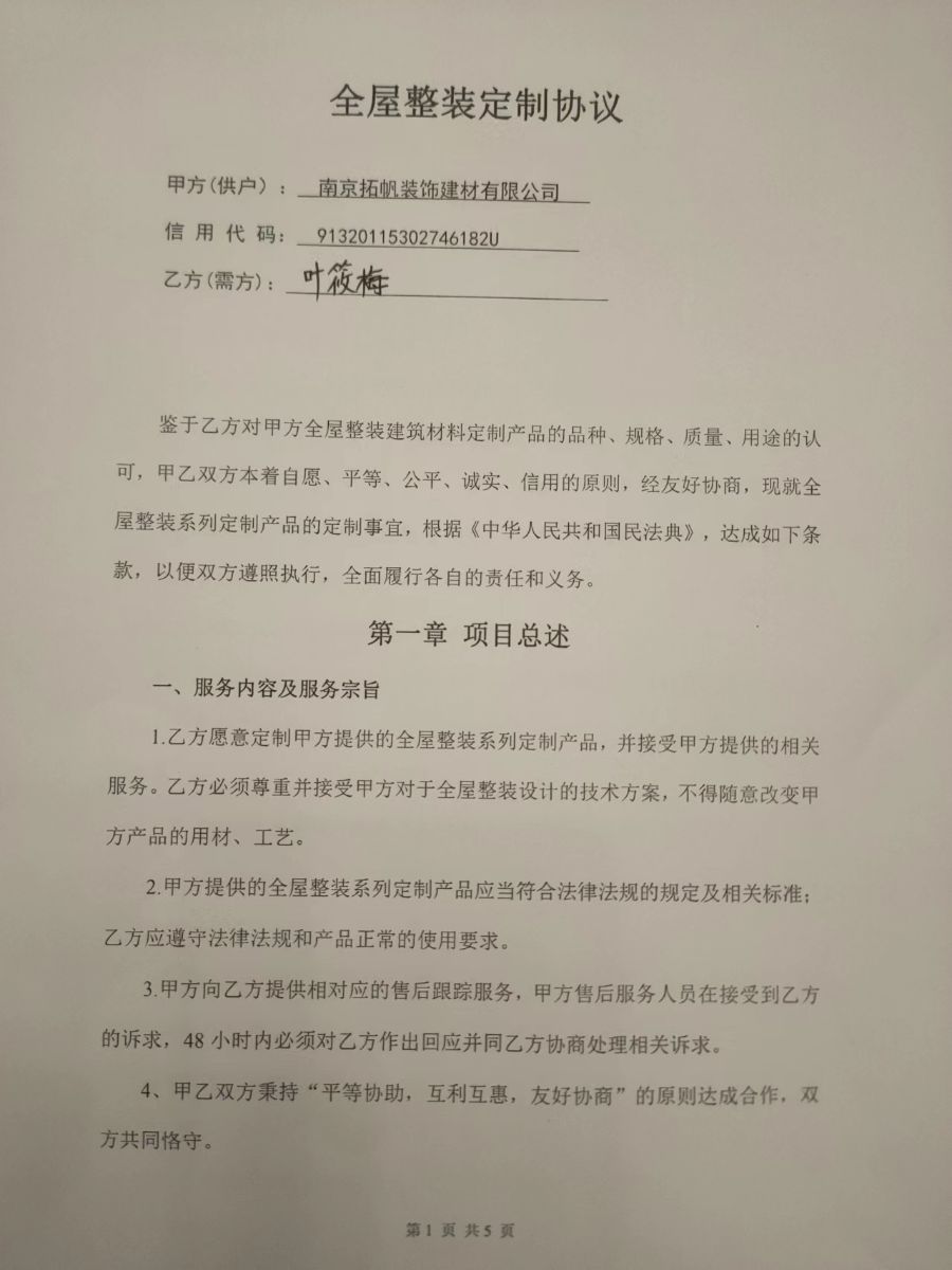 到工廠接待我的是張經(jīng)理張生18936872952,說好的包工包料五萬元整,他說安排設(shè)計人員過去。他讓我先交了二萬八千塊錢預(yù)付款,我就回安徽了,他們用電子版發(fā)給我合同,然后告訴我這是裝修公司統(tǒng)一合同版本,我也沒有多想,反正都說好的事情了。