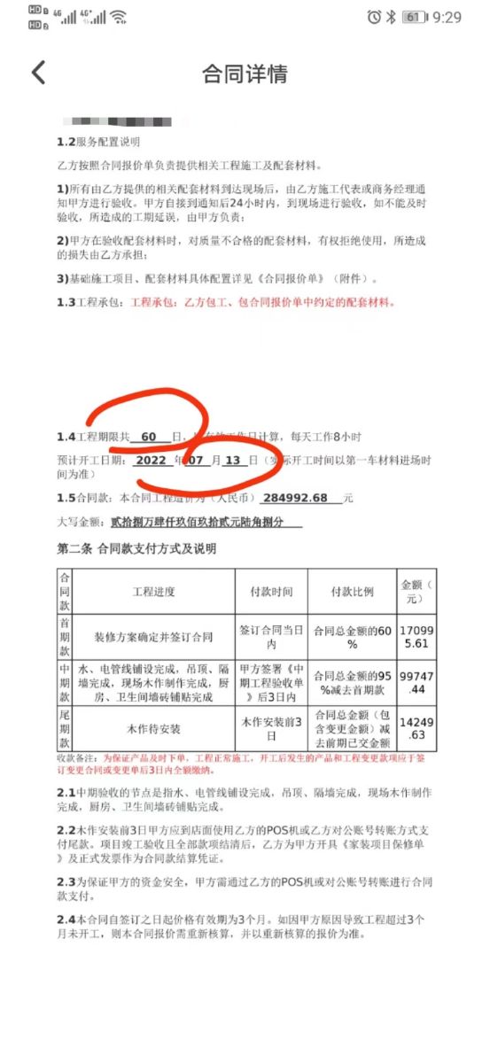 施工合同簽署于2022年7月10日,施工期限為60個(gè)工作日,截至目前已經(jīng)接近1年,期間業(yè)主多次催促加快施工進(jìn)度,公司只是口頭答應(yīng),實(shí)際上一再拖延,導(dǎo)致業(yè)主長期在外租房無法入住。