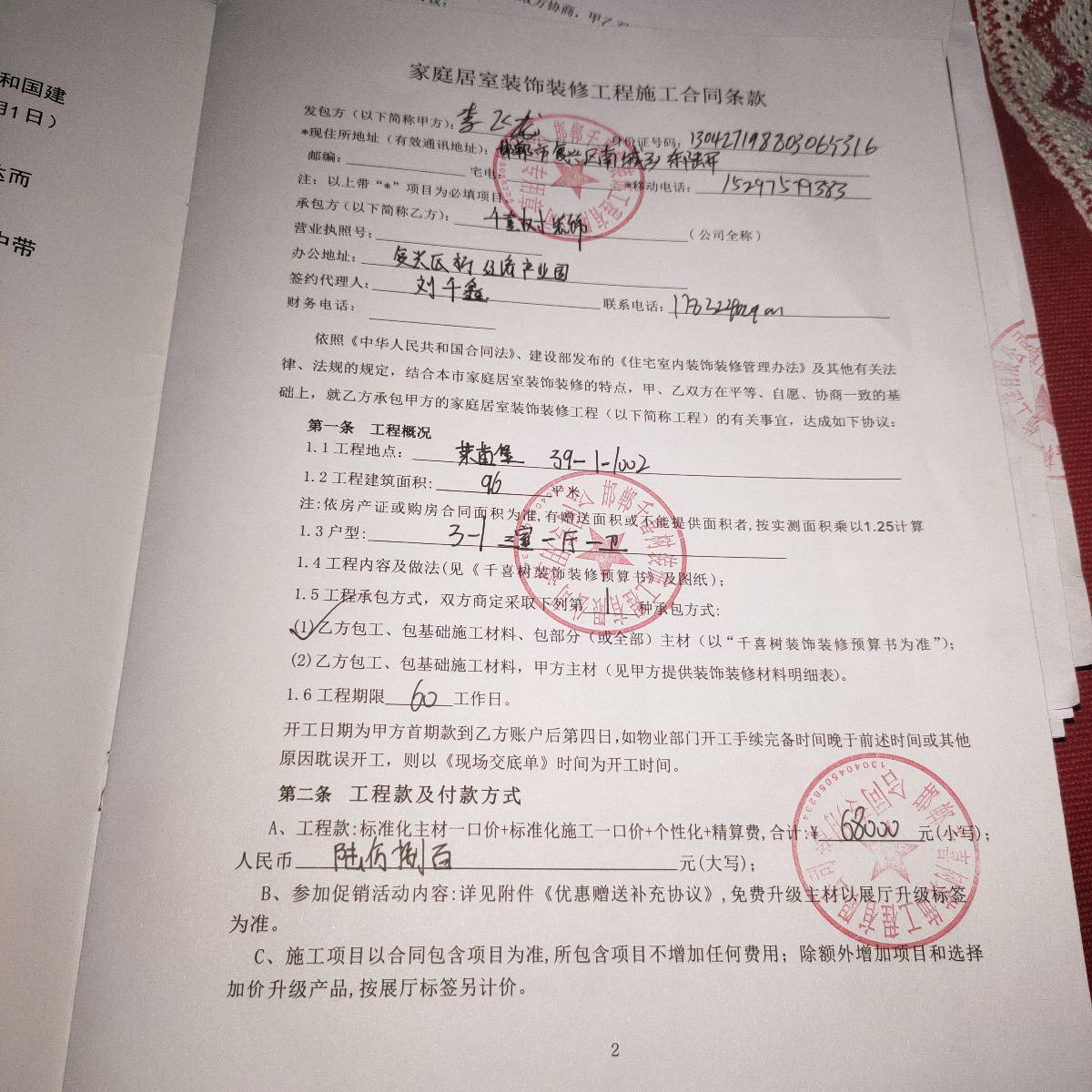 | 裝修面積 | 96m2 | 投訴人手機(jī) | 1529757**** | 被投訴人手機(jī) | 1783240**** |