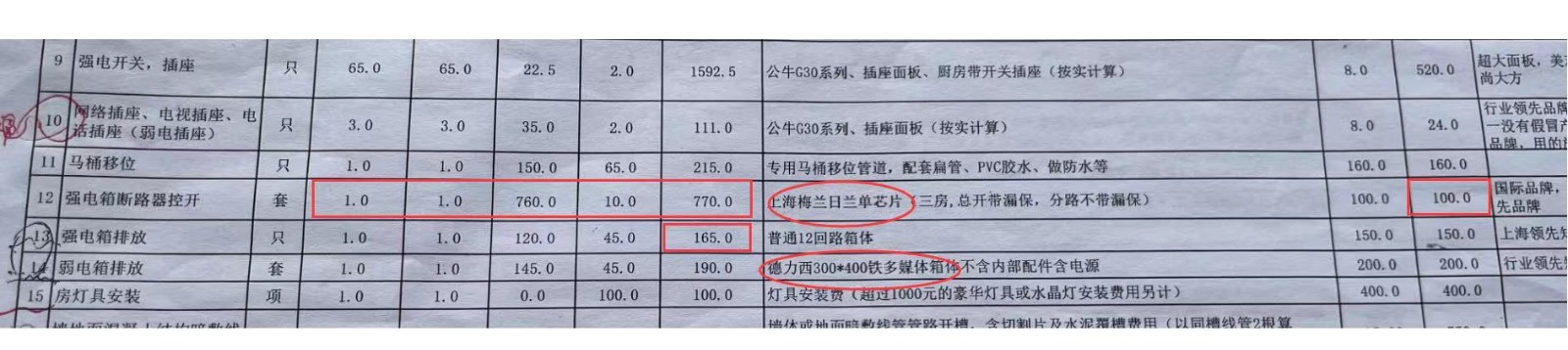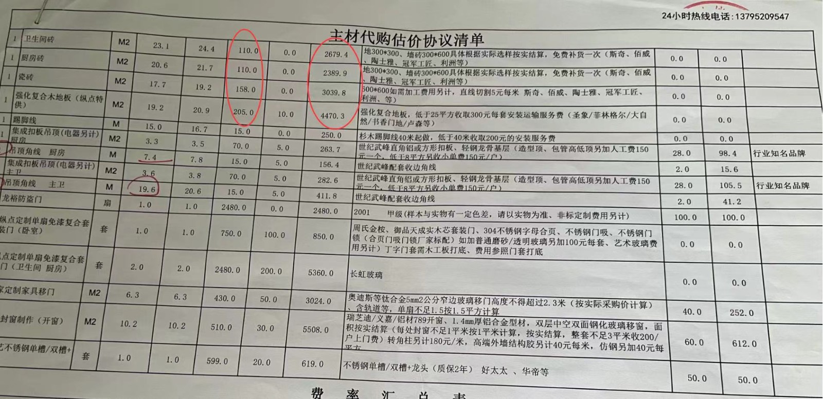 5、單價偏差大。(縱點材料部群內一直在發(fā)的清單)裝修公司材料部發(fā)的清單和給我們的清單單價不一樣,嚴重偏差?。?!