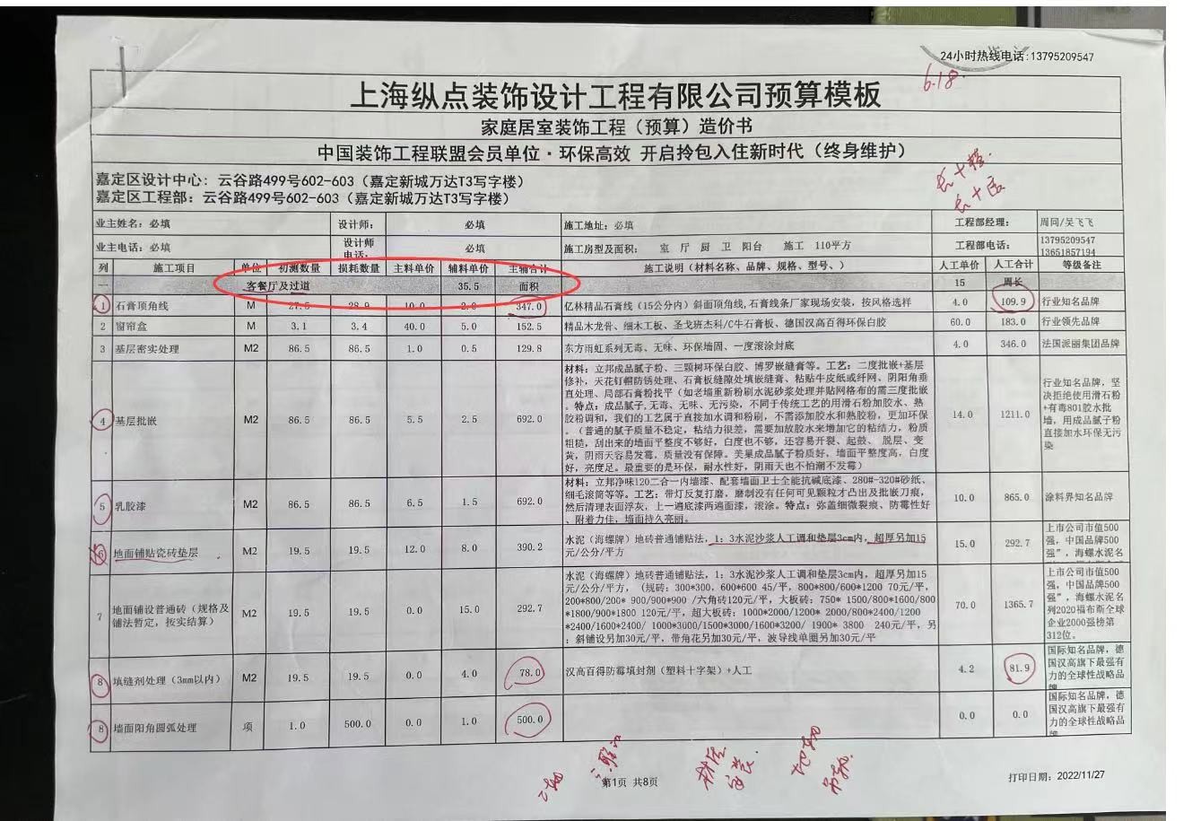 1、建筑面積57.33,套內不到50平,合同上居然是套內60平,清單上按照66平面積收費,另外增項2萬元(說是全包,粉墻就新增一萬多)?。?!面積也不對,我們現(xiàn)在要求按實面積退款?。。?br />