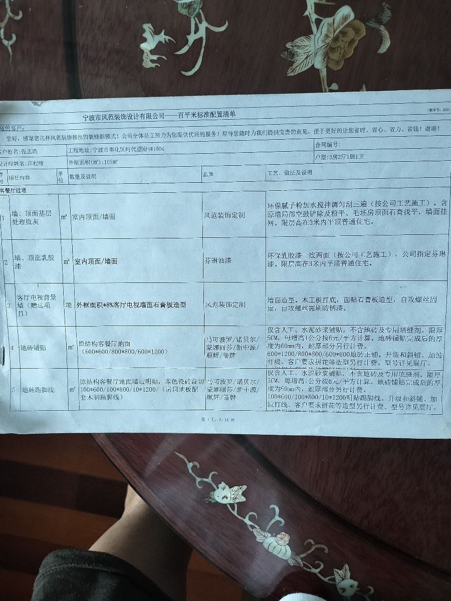 2、按白皮書規(guī)定,外框裝修面積8%巖板電視背景墻(以下簡稱背景墻)價值15000元。每平方米達(dá)到1875元。被投訴人稱之為天價巖板電視背景墻。背景墻怎么做,10有9個業(yè)主都會說不太懂,會聽從設(shè)計師的建議去確定,原因是沒有經(jīng)歷過,我也一樣。投訴人的裝修面積為105㎡,背景墻全墻面積為10㎡,應(yīng)可做巖板面積為8.4㎡。巖板的規(guī)格為寬0.8米*高2.4米,面積為1.92㎡,墻體是長方形,電視柜電視都是長方形,把背景墻做成長方形,為更協(xié)調(diào),配套,漂亮。 然而,設(shè)計師以墻體面積大小比例說辭,背景墻的設(shè)計方案,0.8*3塊,寬2.4米*高2.4米,面積為5.76㎡,相比應(yīng)得的面積8.4㎡縮小了2.64㎡,因業(yè)主少做不還錢,按價值投訴人失掉了4950元。因?yàn)楸煌对V人沒有給我背景墻的面積的施工圖紙,為慎防背景墻再次做小,投訴人有意于22年9月5日發(fā)微信給設(shè)計師,再次確認(rèn)背景墻的寬為2.4米*高2.4米,即巖板尺寸為0.8米*2.4米*3塊,見(證據(jù)3)時至至今,現(xiàn)場做好的巖板框的寬只有2.3米,可是3塊巖板的寬度是2.4米,很顯然巖板無法入框,如果要入框,勢必把巖板的1,2,3塊的其中一塊割掉10工分,面積縮小了,圖案小了,山的畫面只能看到三分之一,譬如看不到山的中間部位,更看不到山腳,失去了背景墻本身的藝術(shù)欣賞價值。巖板入框后,四周還要有4工分的修邊,那本來2.4米的寬度變成了2.22米,問被投訴人,如背景墻有二次修邊,那為什么在設(shè)計時留有足夠的尺寸。由于沒有證據(jù)證明巖板框的寬度2.3米。投訴人與總經(jīng)辦起了交涉,6月22日,總經(jīng)辦半天之內(nèi)曾多次約投訴人與設(shè)計師對質(zhì),以證明寬度2.4米是徹筑尺寸。名義去對質(zhì),實(shí)際是想從對話中錄音取證,投訴人年過70,講話難免會有所出入,其間,總經(jīng)辦過多強(qiáng)調(diào)的是圖紙,投訴人隨即表態(tài)如果有圖紙能證明,一切矛盾都迎刃而解,投訴人回家后發(fā)現(xiàn),圖紙上并無投訴人簽字,見證據(jù)4(沒有投訴人簽字的圖片)可見,總經(jīng)辦與設(shè)計師為了證明背景墻的寬度是2.3米,可為是煞費(fèi)心機(jī),最后拿給投訴人的卻是假證一張。之后,又發(fā)微信圖片,說其另有圖紙證明背景墻的2.4米的寬度,只是沏筑尺寸,見證據(jù)5(大概整張圖紙的四分之一)有投訴人的簽字,卻看不到圖紙內(nèi)容,投訴人對照家里之前設(shè)計師給我的圖紙,發(fā)現(xiàn)有一張簽名與其一模一樣,見證據(jù)6(施工圖紙)圖紙里的背景墻間距標(biāo)的是2470,這后面的70,投訴人理解為修邊尺寸。微信上帶有威脅性的言語:我們有錄音,從頭到尾,從你給我們錄音,到你趙軍(工程部經(jīng)理)發(fā)的微信,到我們截圖,到后期整改,到協(xié)議,我們有徹筑圖紙就夠了。也有污蔑投訴人的言語,如:你這老頭,耍賴,送你到醫(yī)院去,被害夢想癥又犯了等等,整個過程態(tài)度態(tài)度惡劣,言語傷人。還有證據(jù)證明,工地現(xiàn)場背景墻框的尺寸是:背景墻左側(cè)1.025米,中間背景墻2.3米,右邊0.86米;而設(shè)計師給投訴人未經(jīng)簽名的圖紙上顯示:背景墻左邊是1米,中間背景墻是2.4米,右邊墻是0.79米。說明了木框二邊占用了背景墻的位置0.95米,正好是背景墻2.4米減少10工分的面積。造成背景墻寬度縮小有二個原因,原因1設(shè)計師設(shè)計時預(yù)留尺寸不足,沒有設(shè)置修改尺寸,原因2是泥木工施工過于粗糙,墻或本框占用了中間放巖板的位置。因?yàn)橥对V人沒有給于投訴人關(guān)于巖板墻體圖紙。但二者不管是誰的原因,過錯都是被投訴方。還有6月30日,總經(jīng)辦喬憨發(fā)微信無數(shù)次要投訴人確認(rèn),墻體改不改,就是拆掉重做,問:改不改,只要你說改,咱立馬動工,費(fèi)用由公司代付,裝好后再確定由誰來承擔(dān)。如果投訴人答應(yīng)他改,那已經(jīng)做好的巖板框的尺寸隨之消失,即中間2.3米,左邊1.025米,右邊0.86米,就是二邊墻面占據(jù)背景墻的尺寸,也就是沒有了證據(jù)。沒有了證據(jù),投訴人就要承擔(dān)拆沏墻的風(fēng)險。