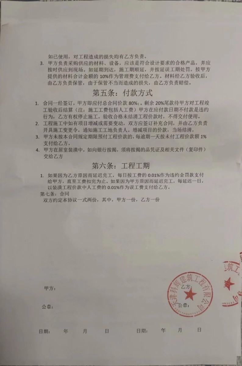 4.裝修公司目前不僅沒有返合同約定未完工部分裝修費,同時對于有施工質量部分項目沒有做出任何承諾。