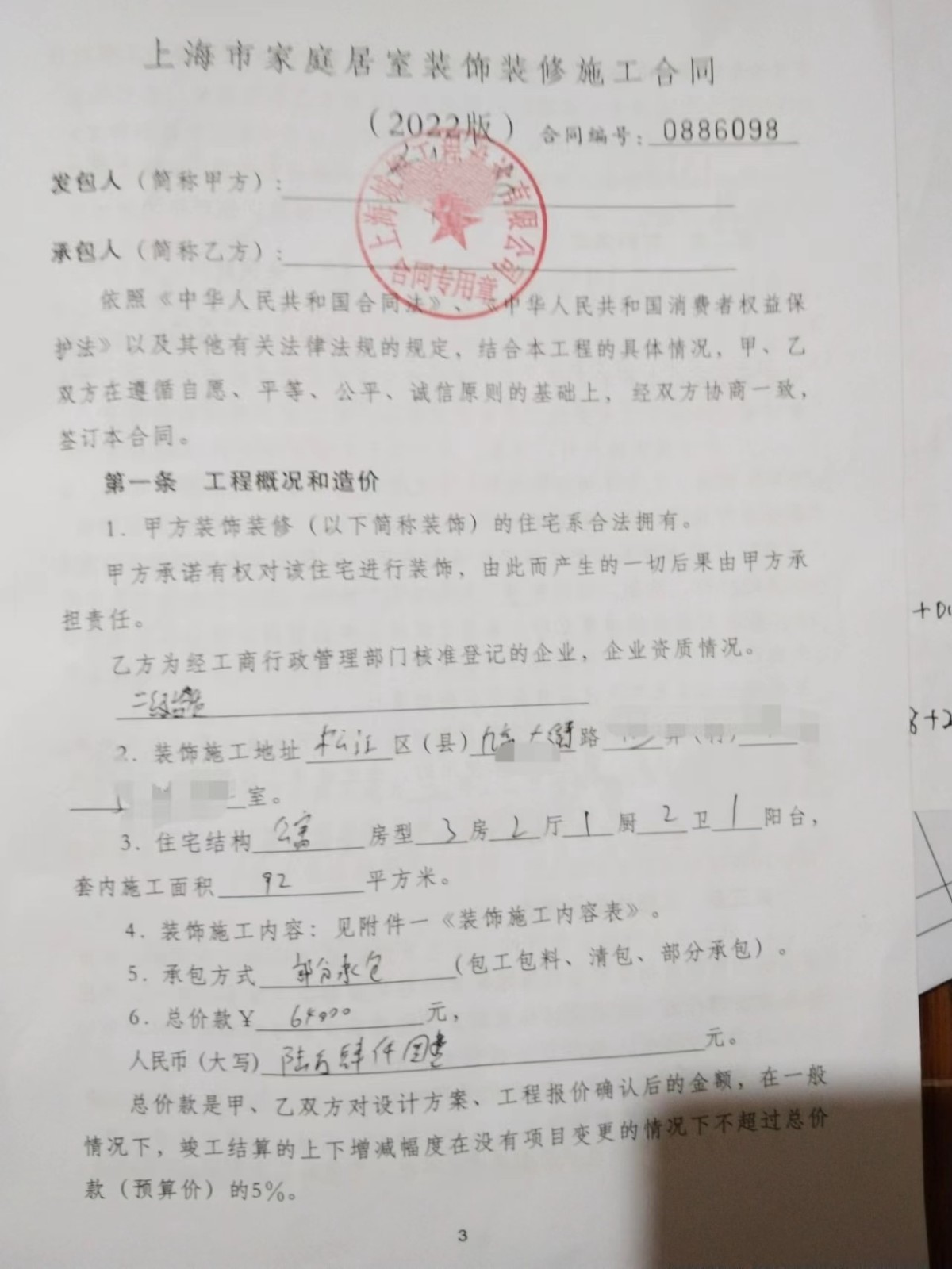 | 裝修面積 | 92m2 | 投訴人手機 | 1381698**** | 被投訴人手機 | 1879545**** |