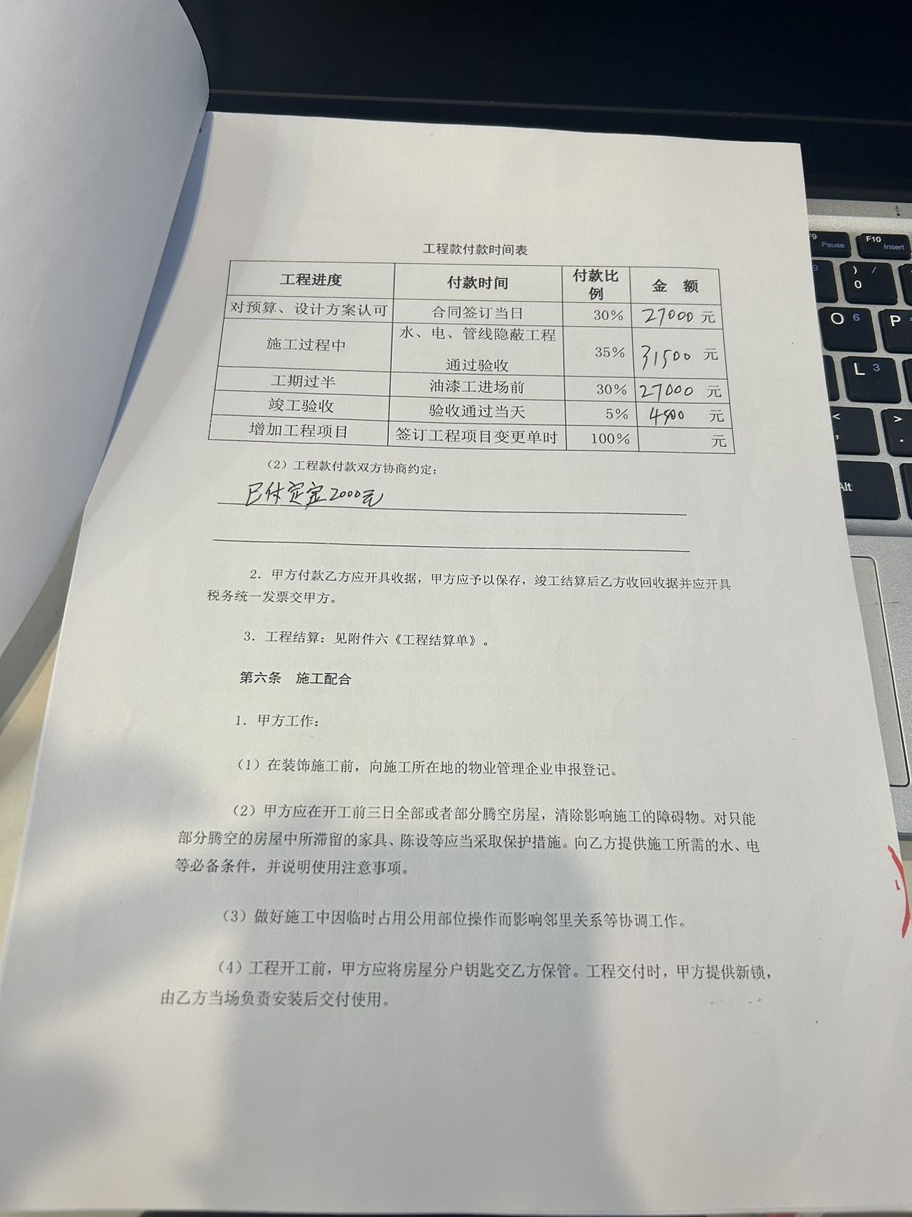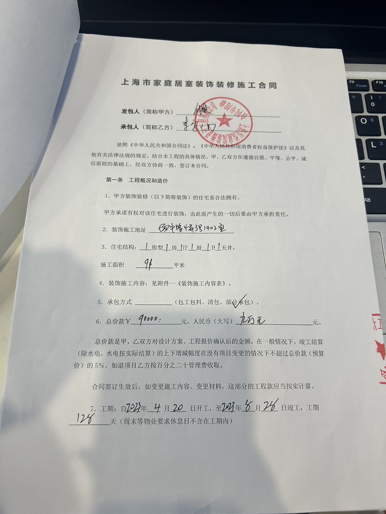 我家就62平套內(nèi) 僅硬裝的情況 目前做了拆除(未全部完成)水電(未全部完工) 瓦工(未全部完成)木工(未全部完成) 油工(全部未做)已經(jīng)給了7w多元 合同總金額為89400