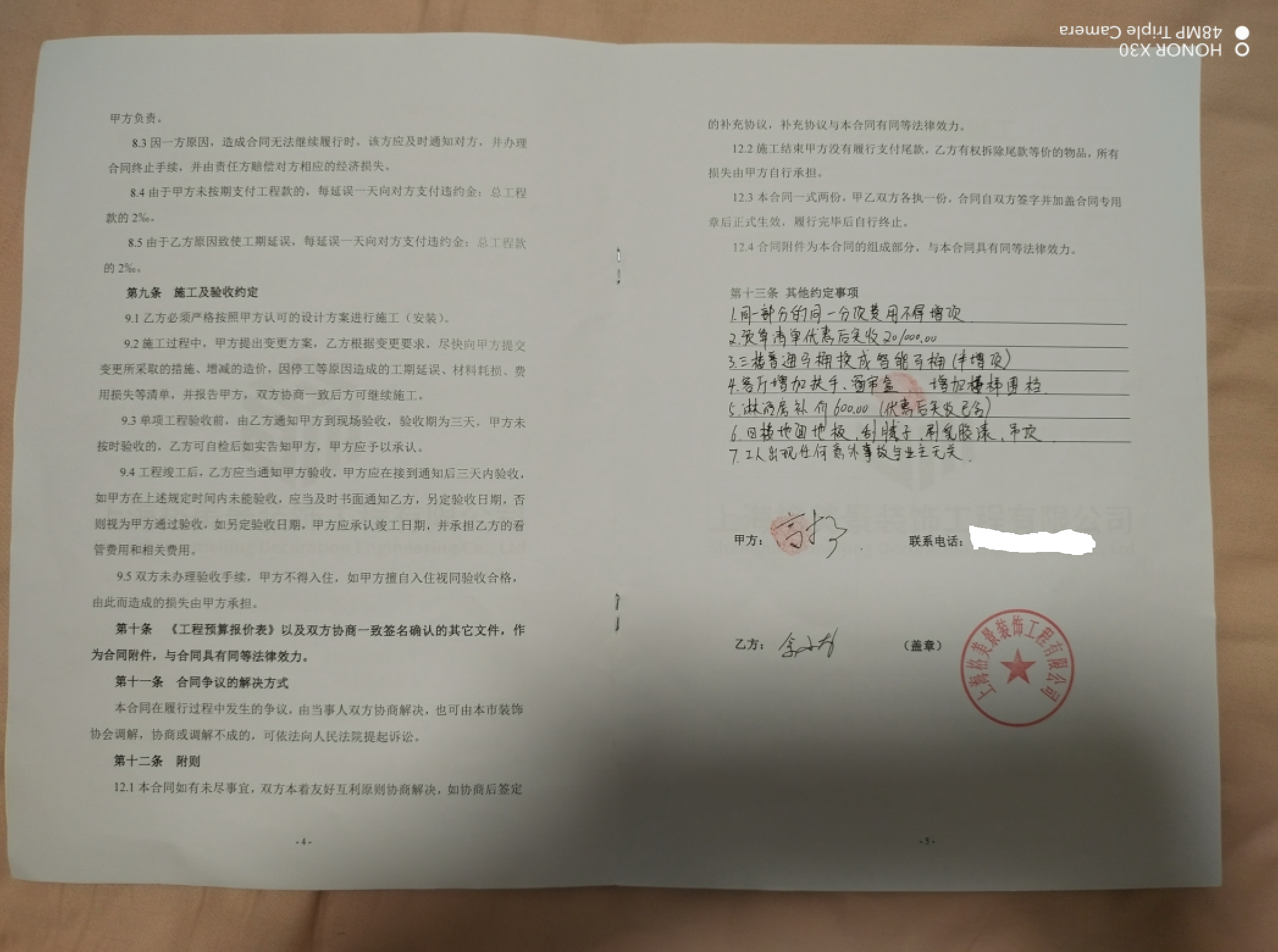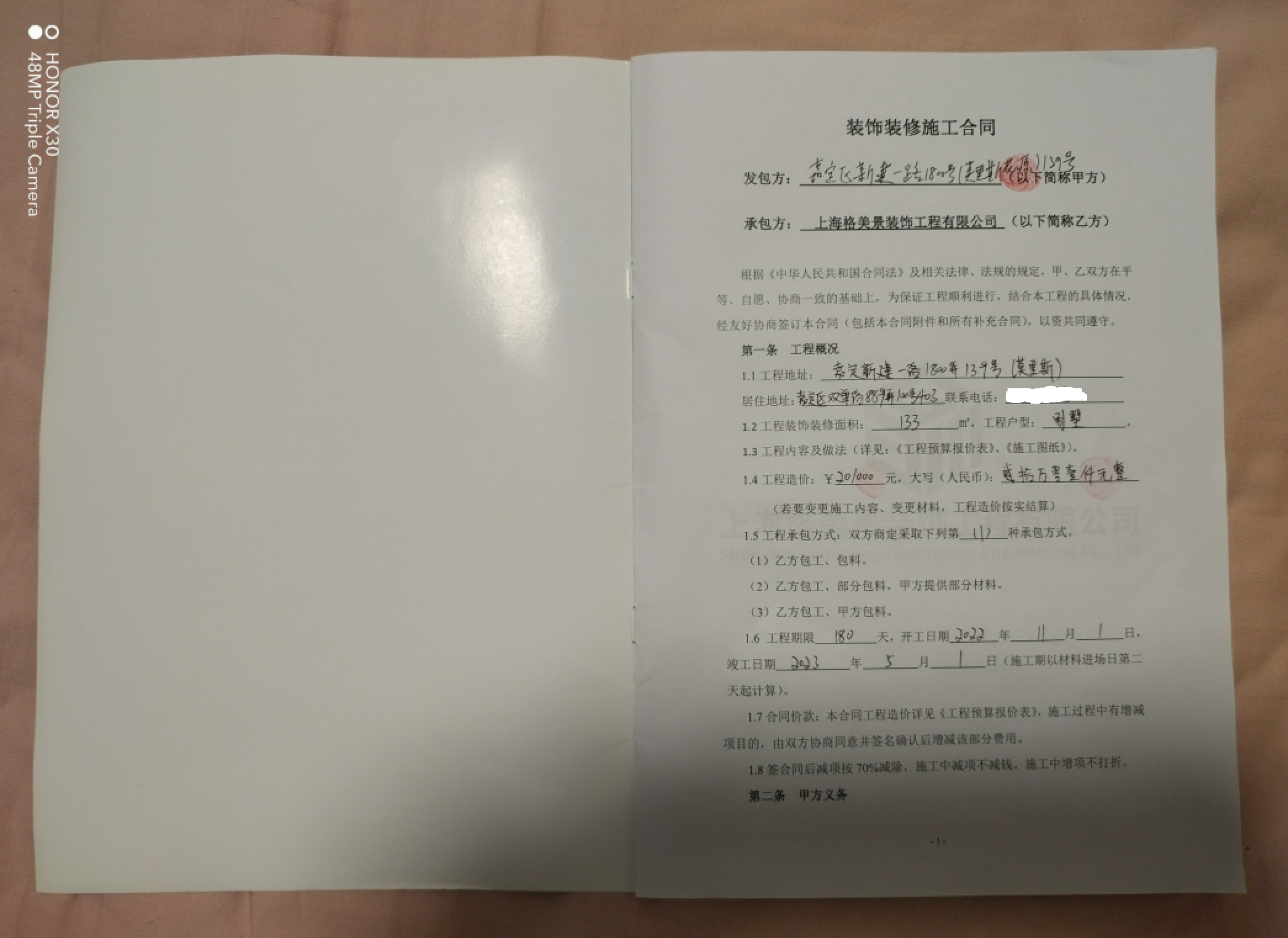 我于2022年10月份經(jīng)人介紹與上海格美景裝飾工程有限公司簽訂了裝飾施工合同(法人余小龍),與裝修公司簽訂的是全包合同(包工+包料),裝修房屋地址位于上海市嘉定區(qū)新建一路1800弄(莫里斯花源)139號。合同要求完工時間是2023年4月30日,但從5月至今工程完全停工,房間地板、樓梯地板、柜門、房間門、浴霸、倒臺等都沒有安裝,材料也沒有送過來,已經(jīng)較合同約定的交付時間逾期80多天。我已多次催促裝修公司,但裝修公司老板余小龍要么是失聯(lián),要么是找各種借口拖延時間。本來我們計劃5月份搬進去,目前搞得所有搬過來的東西只能都堆在一樓,全家老小5口現(xiàn)在只能在附近租房子住,裝修公司的違約和無賴行為給我和家人造成了巨大的損失!