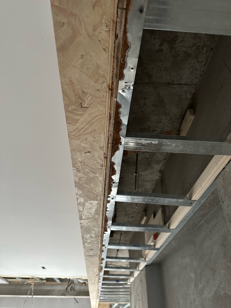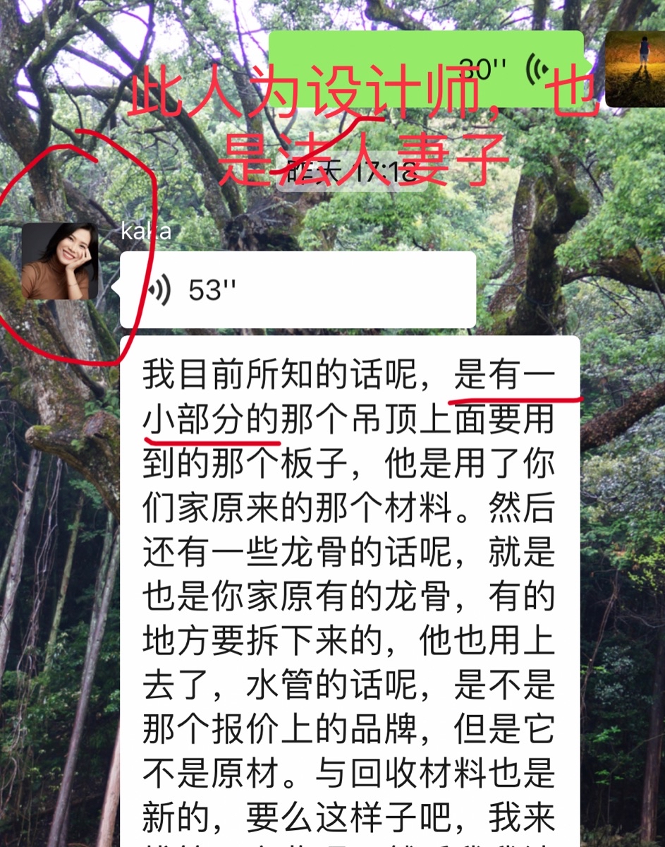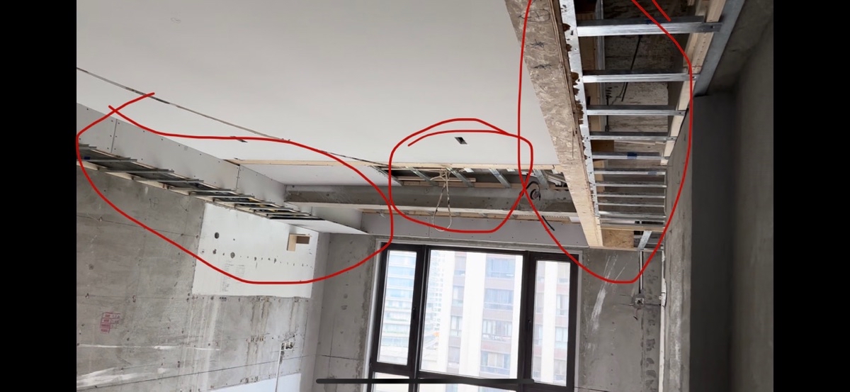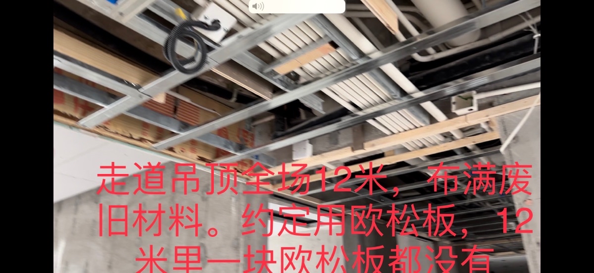 2、 乙方在施工過程中,將從甲方原有房屋拆除下來的石膏板、木板、龍骨等廢舊材料用于新項(xiàng)目建設(shè),包括但不限于:用廢舊材料制作客餐廳吊頂建造,用廢舊材料制作走道吊頂(走道長(zhǎng)度12米),用廢舊材料用于吊頂承重部位加固,將廢舊材料用于地面保護(hù)(合同約定為全新材料),將廢舊材料用于隔墻建造,該隔墻正反面設(shè)計(jì)為掛墻A柱和承重層板。上述使用廢舊材料之行為存在嚴(yán)重安全隱患,乙方無視甲方生命安全。甲方發(fā)現(xiàn)后,就現(xiàn)場(chǎng)材料是否存在回收材料一事詢問乙方,乙方含糊其辭,不予答復(fù)。甲方向乙方出示相關(guān)圖片后,乙方僅承認(rèn)“小部分吊頂有此情況”。