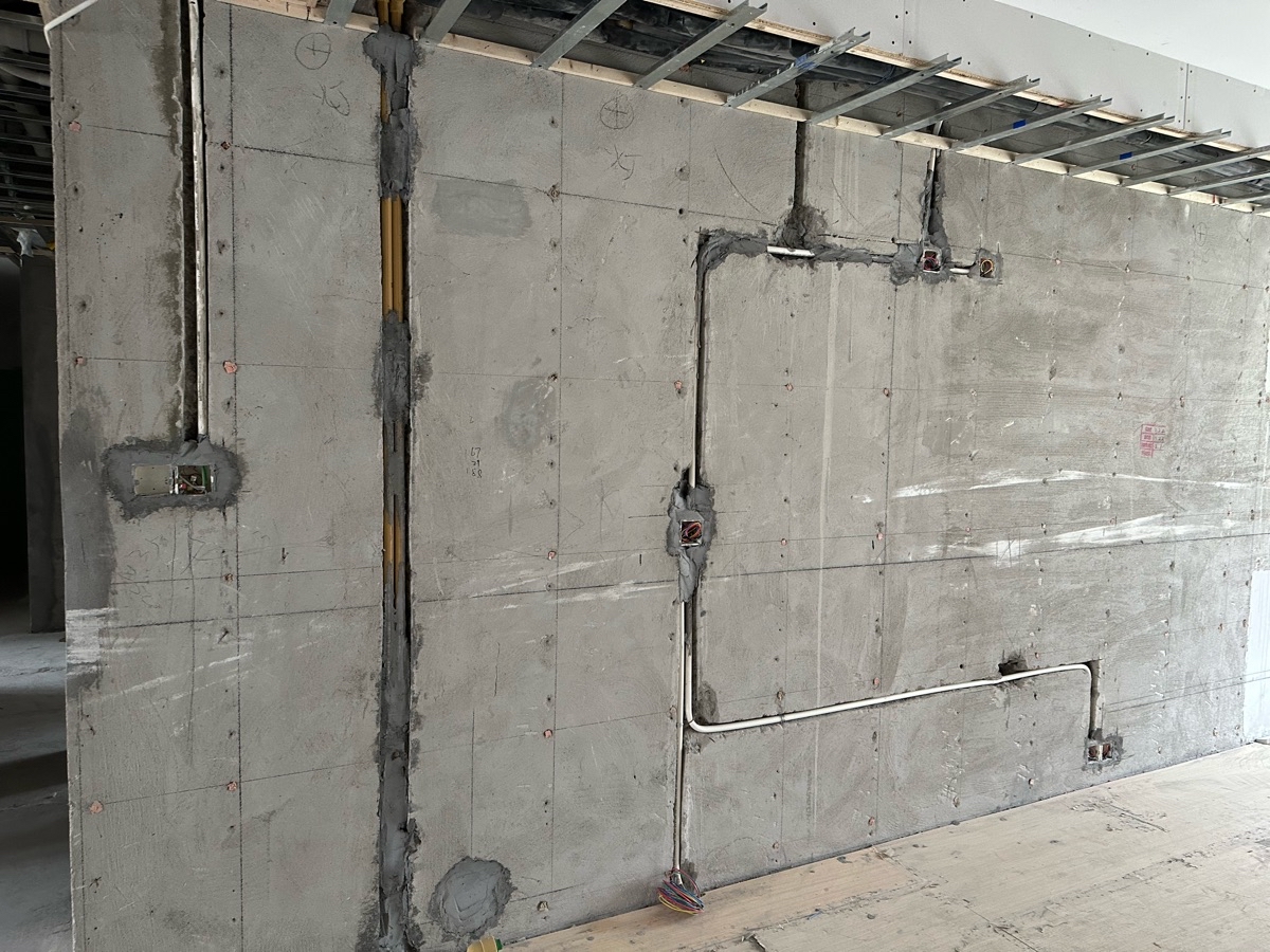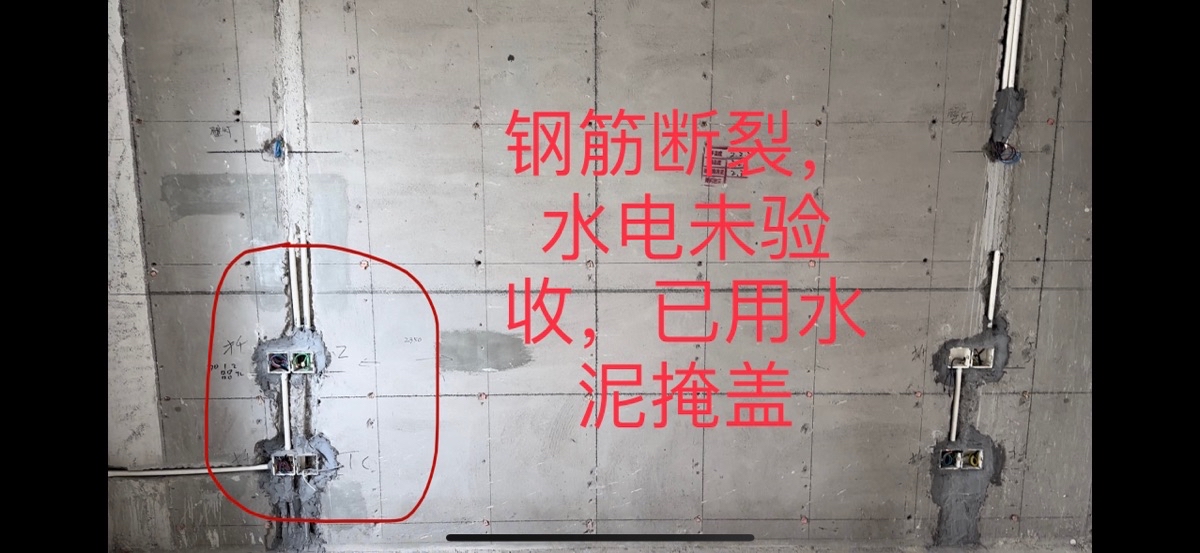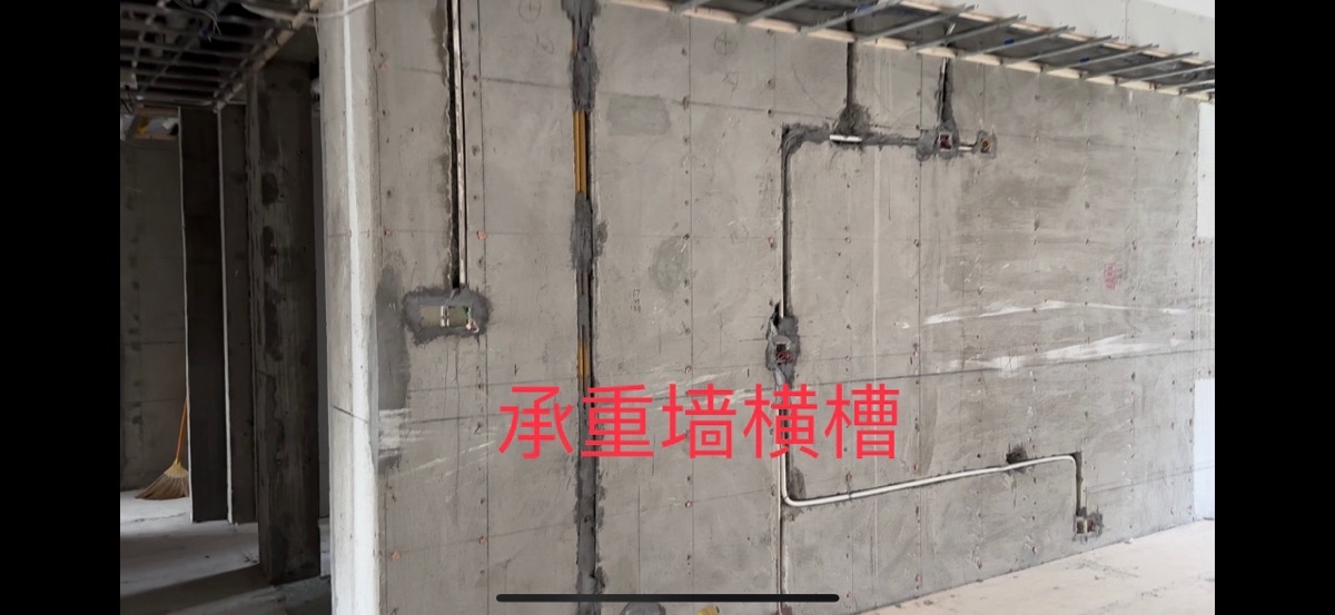 4、 乙方施工在多處承重墻(均具備開豎槽條件)連續(xù)開橫槽,最長(zhǎng)橫槽貫穿L型墻體,長(zhǎng)度超過4米。