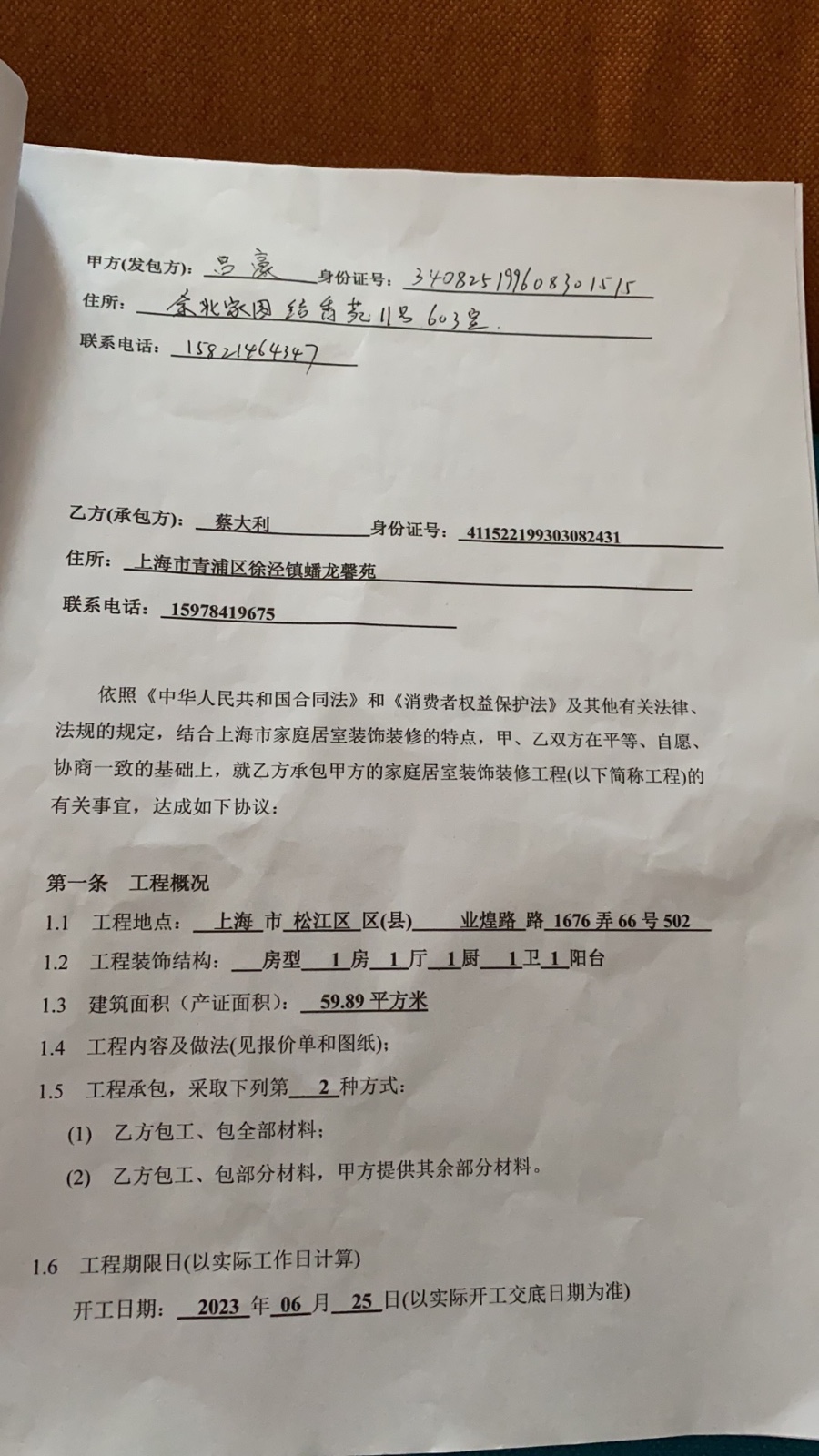 | 裝修面積 | 59.89m2 | 投訴人手機(jī) | 1582146**** | 被投訴人手機(jī) | 1597841**** |