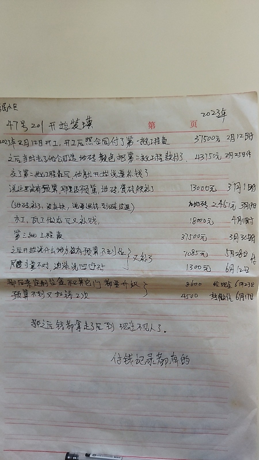 提交了第二批工程款后,他就開(kāi)始說(shuō)要補(bǔ)錢(qián)了說(shuō)這里沒(méi)有預(yù)算,那里沒(méi)預(yù)算,地磚,瓷磚缺補(bǔ)了(13000元3月1付)