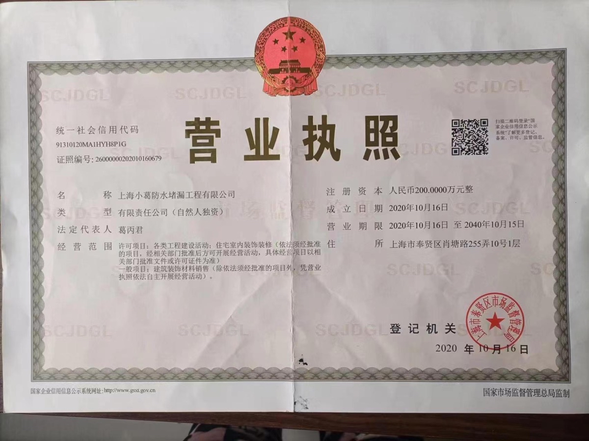 上海小葛防水堵漏有限公司法人已經(jīng)聯(lián)系我 已經(jīng)及時(shí)解決謝謝 很滿意