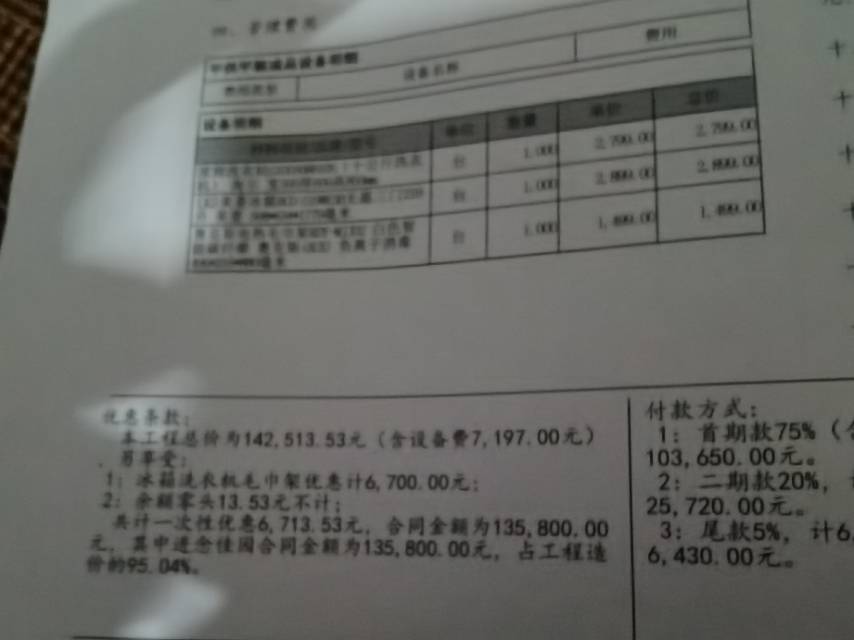本人5月27號與佳園裝潢公司簽訂裝修合同,約定6-10開工8月6號完成,首期付款103000,現(xiàn)已逾期33天,至今只完成水電改造,木工 瓦工,其中水電改造耗時2周半,瓦工耗時3周,原因?yàn)檫M(jìn)念佳園拖欠供應(yīng)商錢,導(dǎo)致廠家遲遲不發(fā)貨,強(qiáng)弱電箱及瓷磚還是本人墊付才送來,后續(xù)馬桶,花灑,油煙機(jī),熱水器,廠家表示必須佳園付款才開始安排供貨,吊頂及定制柜廠家也是收到款項(xiàng)才安排上門測量及制作,現(xiàn)房子只完成硬裝便無法繼續(xù),忘裝潢網(wǎng)老師幫忙和廠家溝通。