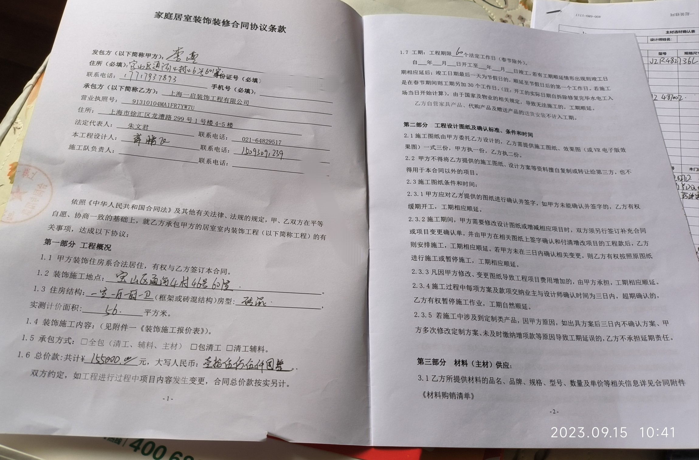 詳細(xì)的情況有圖片佐證:合同預(yù)算15萬多,結(jié)算出19萬多,工期合同60個工作日,實際100個工作日還在修修補補。施工工藝差到墻頭爆開,墻磚貼一半,水斗水龍頭不是合同里的品牌款式,污損嚴(yán)重;防盜門污損嚴(yán)重,廚房燃?xì)獗頍崴髋帕性O(shè)計不合理,后期重裝產(chǎn)生費用增項。增壓磅設(shè)計安裝在室外擾民后自行重新裝回室內(nèi),產(chǎn)生費用。安裝的熱水器、廚房水斗、洗臉臺盆進(jìn)出水角閥,工藝粗糙,業(yè)主操作中劃傷了手指頭。先期設(shè)計師和項目經(jīng)理離職,項目經(jīng)理王習(xí)明7月2號離職,離職后二十天內(nèi)偽造延工合同單,設(shè)計師薛鵬飛兼簽合同人離職,造成后續(xù)施工數(shù)據(jù)材料混亂,結(jié)算時也有款項不明。雖然后期一直在修補,但安全隱患肉眼可見。人工費用超高,明細(xì)表看不太懂,欺騙業(yè)主先行結(jié)算后談賠付,業(yè)主念在大家生活不易,愿意結(jié)算。然而一旦結(jié)算完成后預(yù)約好9月16號就是明天到裝修的房子里談賠付事宜,昨晚就以后期項目經(jīng)理生病拖延賠付時間,今天更是拿多出來的裝修點位和偽造的延工合同單再次推脫賠付,態(tài)度惡劣。請求行業(yè)協(xié)會出面維護業(yè)主的權(quán)益和整頓上海一啟裝飾有限公司行業(yè)作風(fēng),讓業(yè)主得以早日安居樂業(yè)。