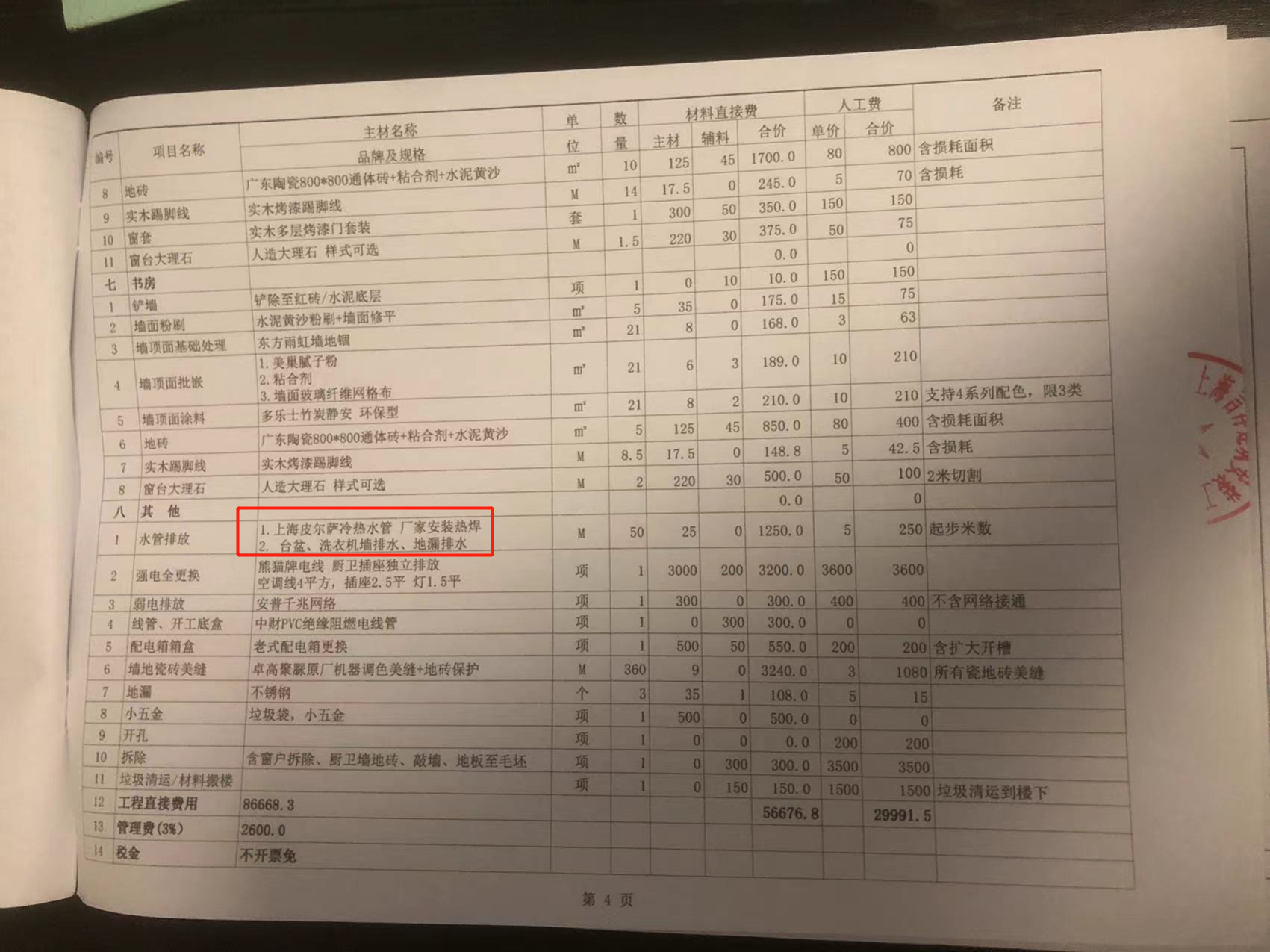 合同報(bào)價(jià)單上注明使用上海皮爾薩水管,但實(shí)際使用的并非上海皮爾薩水管