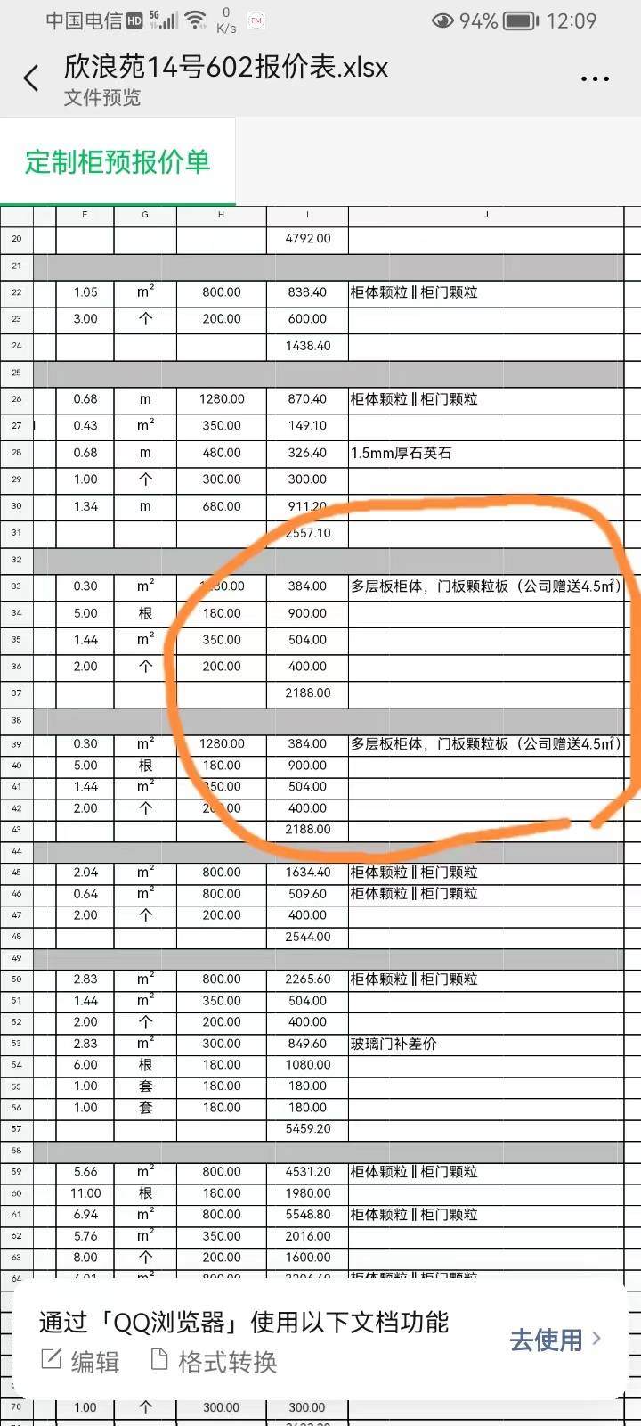 我于23年8月22日同馨成裝飾公司(附圖1)簽訂全包閉口合同(附圖2),并付款76500元。9月4日開工,9月8日向我指出櫥柜裝修公司僅贈送4.5平方,合同中(附圖3)確實是寫主臥衣柜,然而前期的報價單(附圖4)卻是計算在內(nèi)的,而且由于我櫥柜較多,有47個平方,事前特地指出,由裝修公司綜合考量后給出總價255000元的報價。整個洽談過程中并無人告知我櫥柜另外計算。