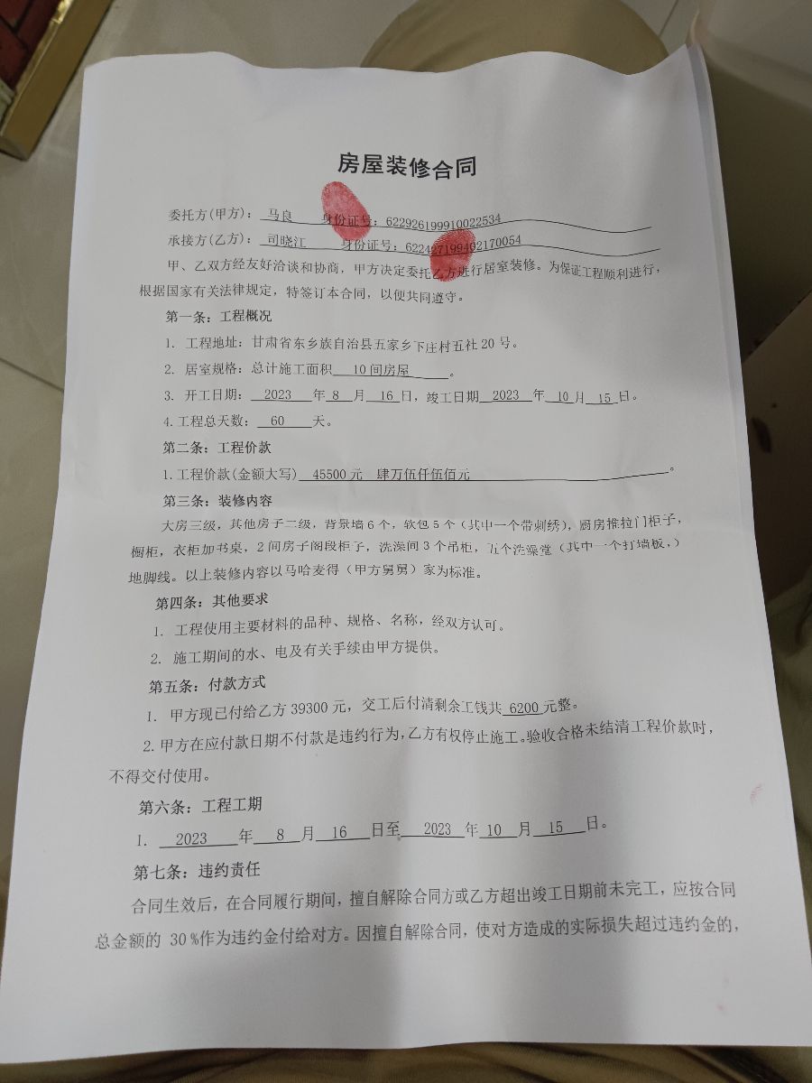 | 裝修面積 | 200m2 | 投訴人手機(jī) | 1779304**** | 被投訴人手機(jī) | 1314175**** |