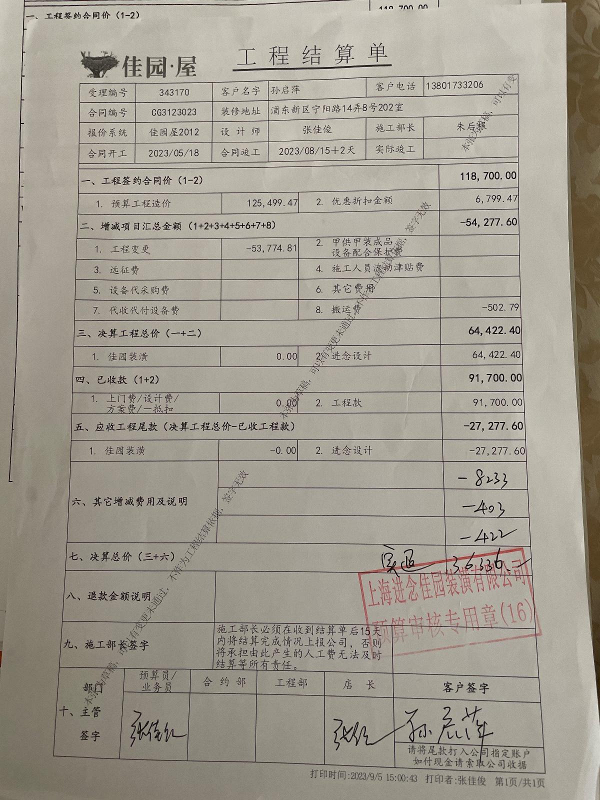 | 投訴類型 | 合同糾紛 | 投訴人 | 孫** | 被投訴單位 | 上海進(jìn)念佳園裝潢有限公司 |