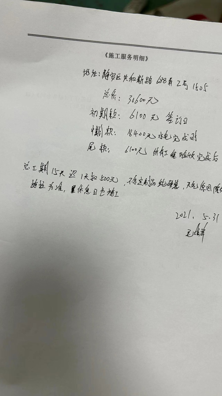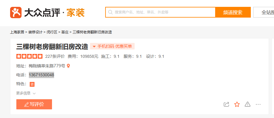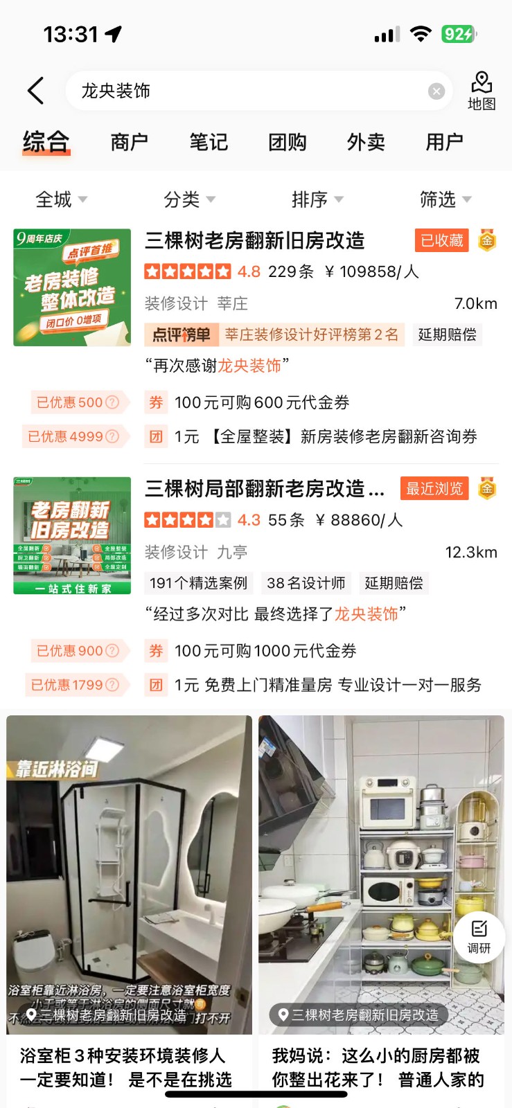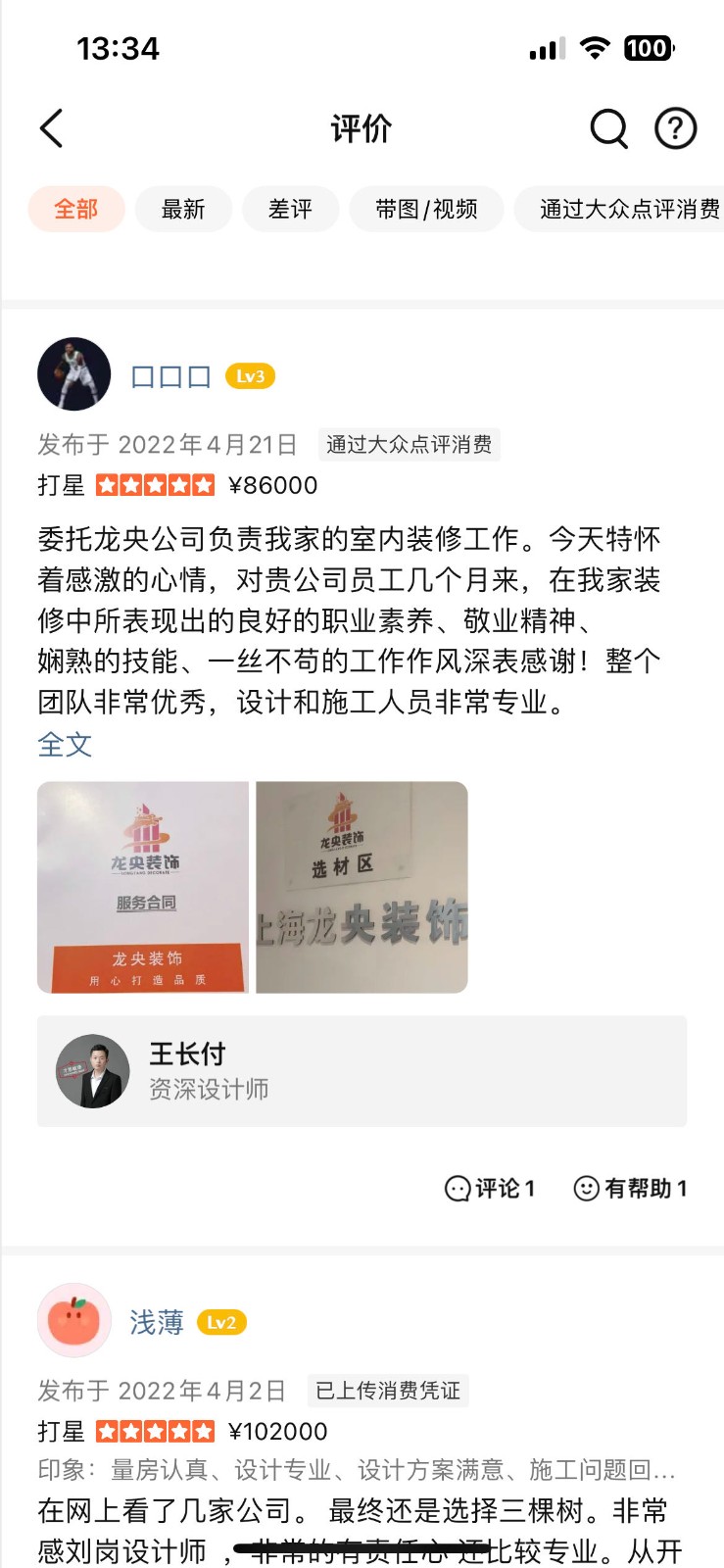 ①2021年本人在大眾點(diǎn)評找到三棵樹-龍央舊房改造,與他們設(shè)計(jì)師簽訂廚房+廁所局部改造合同, 并于2021年7月完工,掛三棵樹的牌子,簽的龍央的合同