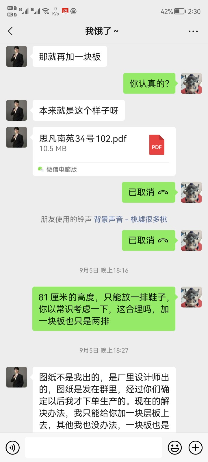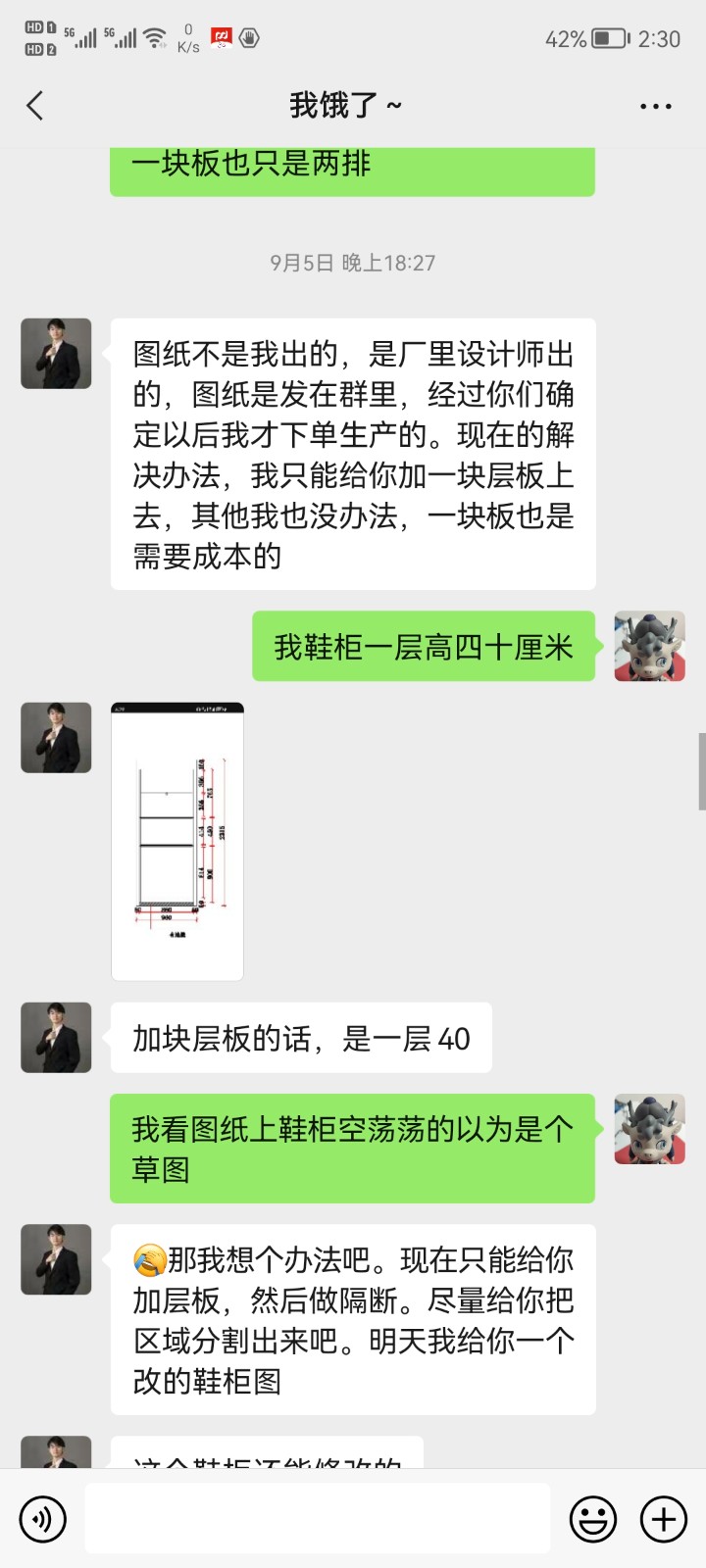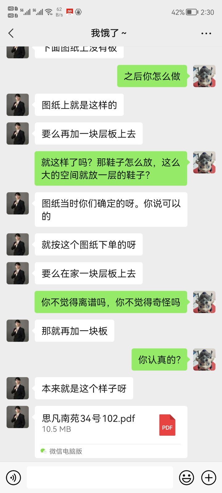 6.鞋柜里面一塊隔板都沒有,問設(shè)計師是怎么回事,他只說這是做柜子的公司設(shè)計的,將自己的責任全部排除