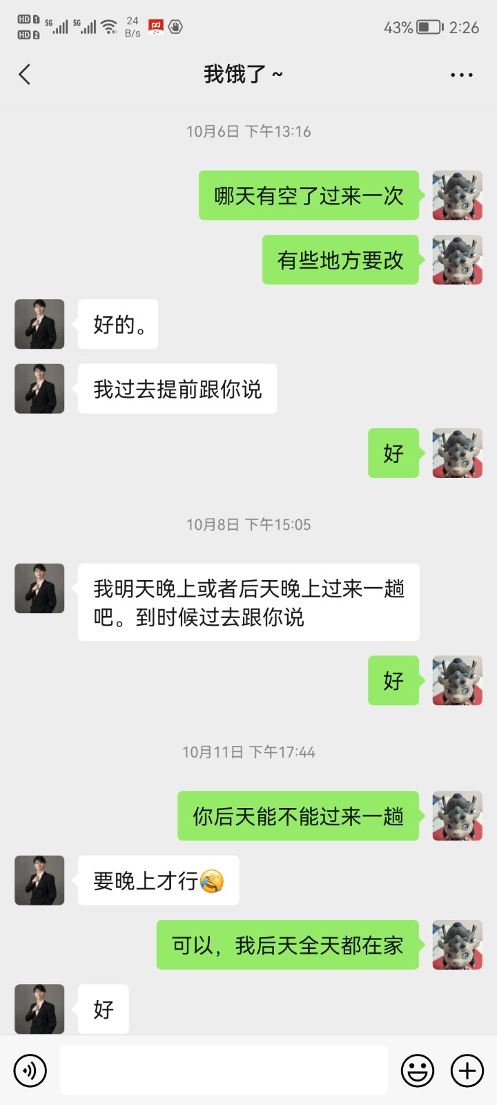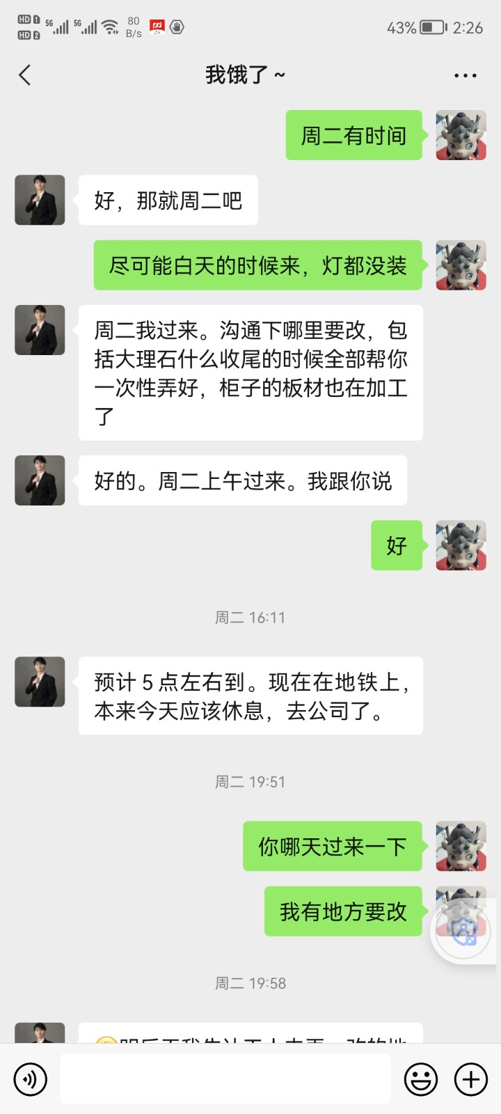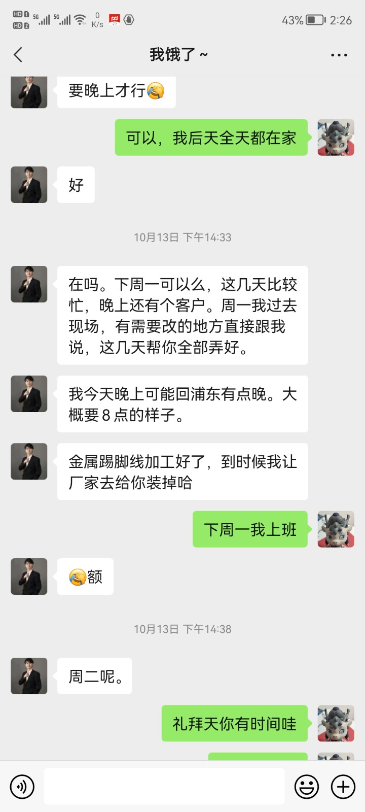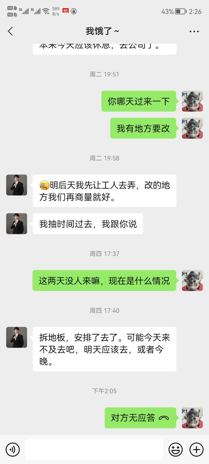 4.多次詢問施工人員什么時候來,設(shè)計師一直說明天