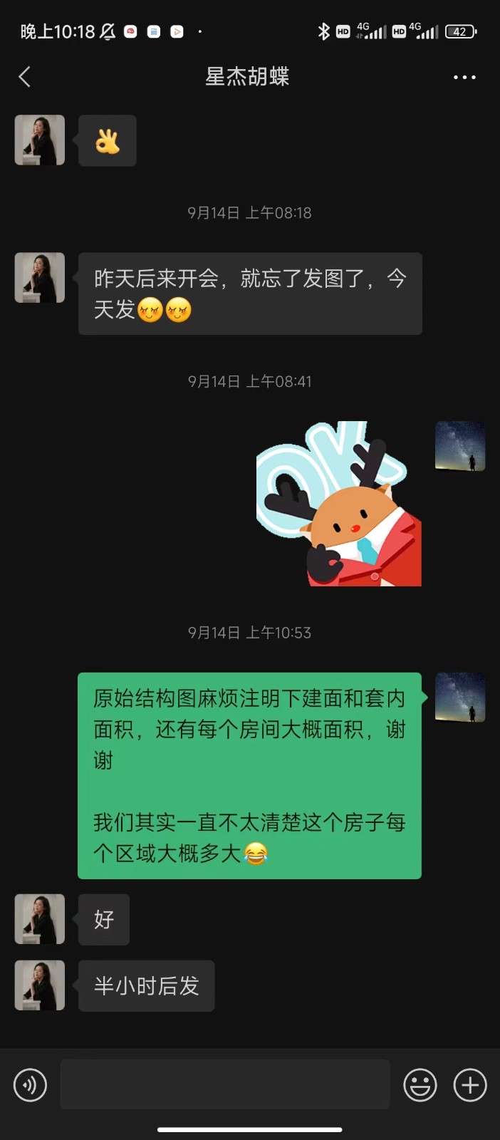 原本約定9.13發(fā)量房戶型圖,結(jié)果9.14在我主動(dòng)催促下才發(fā)