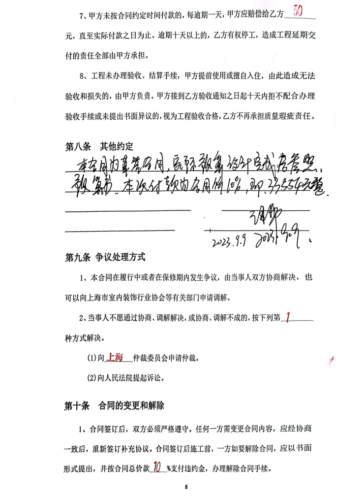 2023.9.9簽訂施工合同;施工合同付款比例首次付款70% 簽合同現(xiàn)場(chǎng)說我們可以按40% 40% 20%付款,但是當(dāng)時(shí)沒保留錄音證據(jù)
