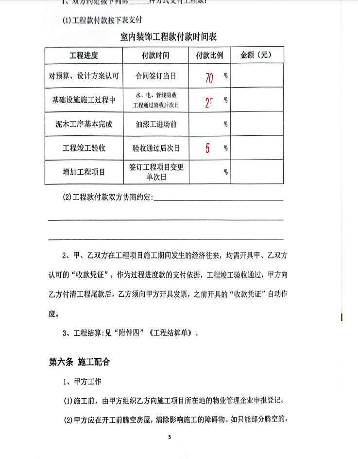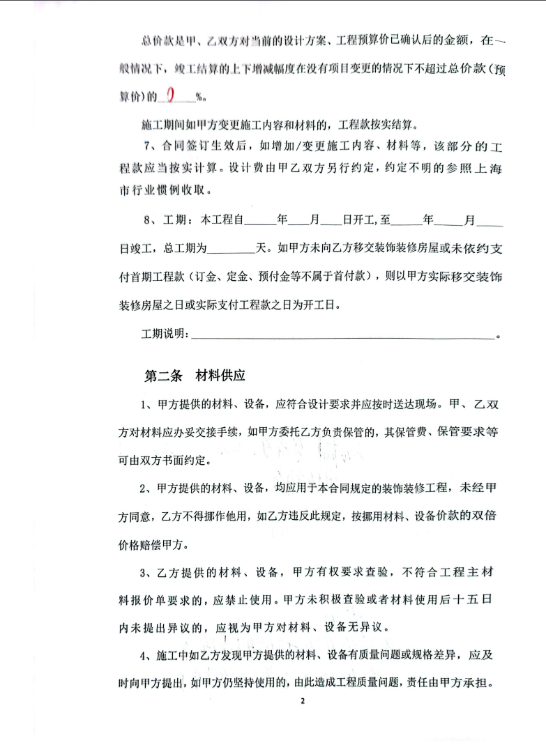施工合同 其他約定 :本合同為草簽合同,實(shí)際預(yù)算設(shè)計(jì)完成后參照預(yù)算書。本次付款為合同價(jià)10%。 違約金10%;