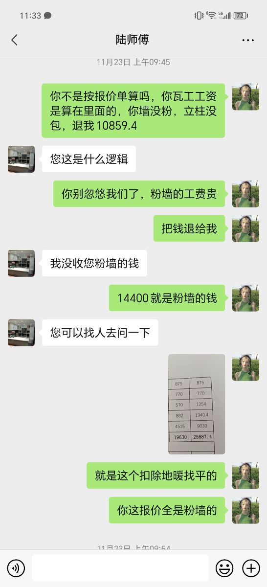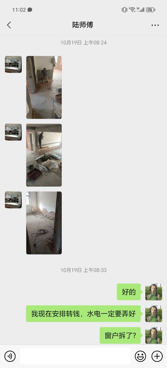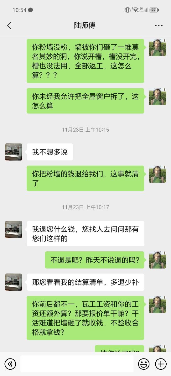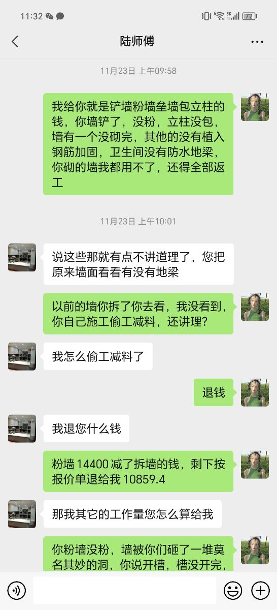 4.房內有部分承重墻被砸壞,只有一處經老父親多次溝通才給修補,其他一概推卸責任拒不整改,不退還施工款項。