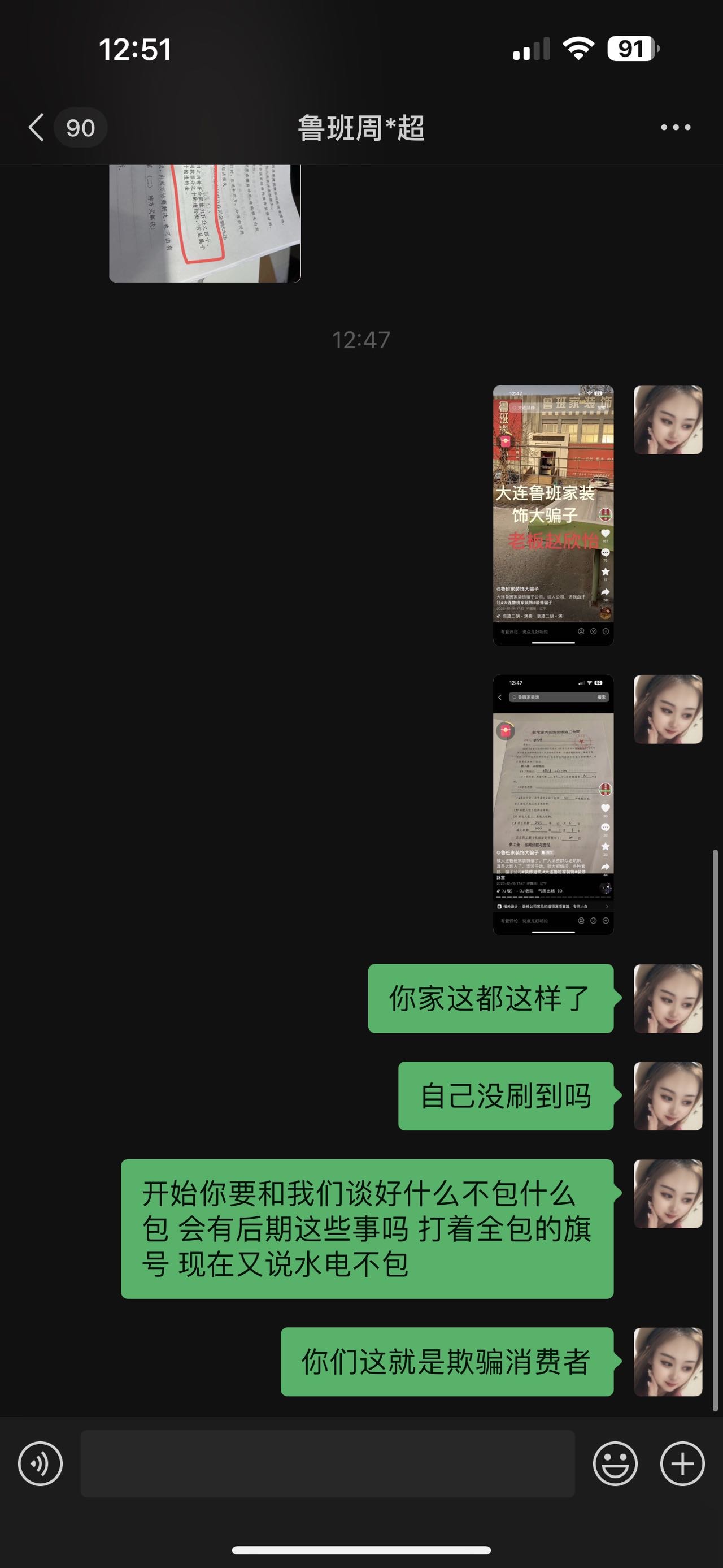 | 投訴類型 | 合同糾紛 | 投訴人 | 吉** | 被投訴單位 | 大連魯班世家裝修工程有限公司 |