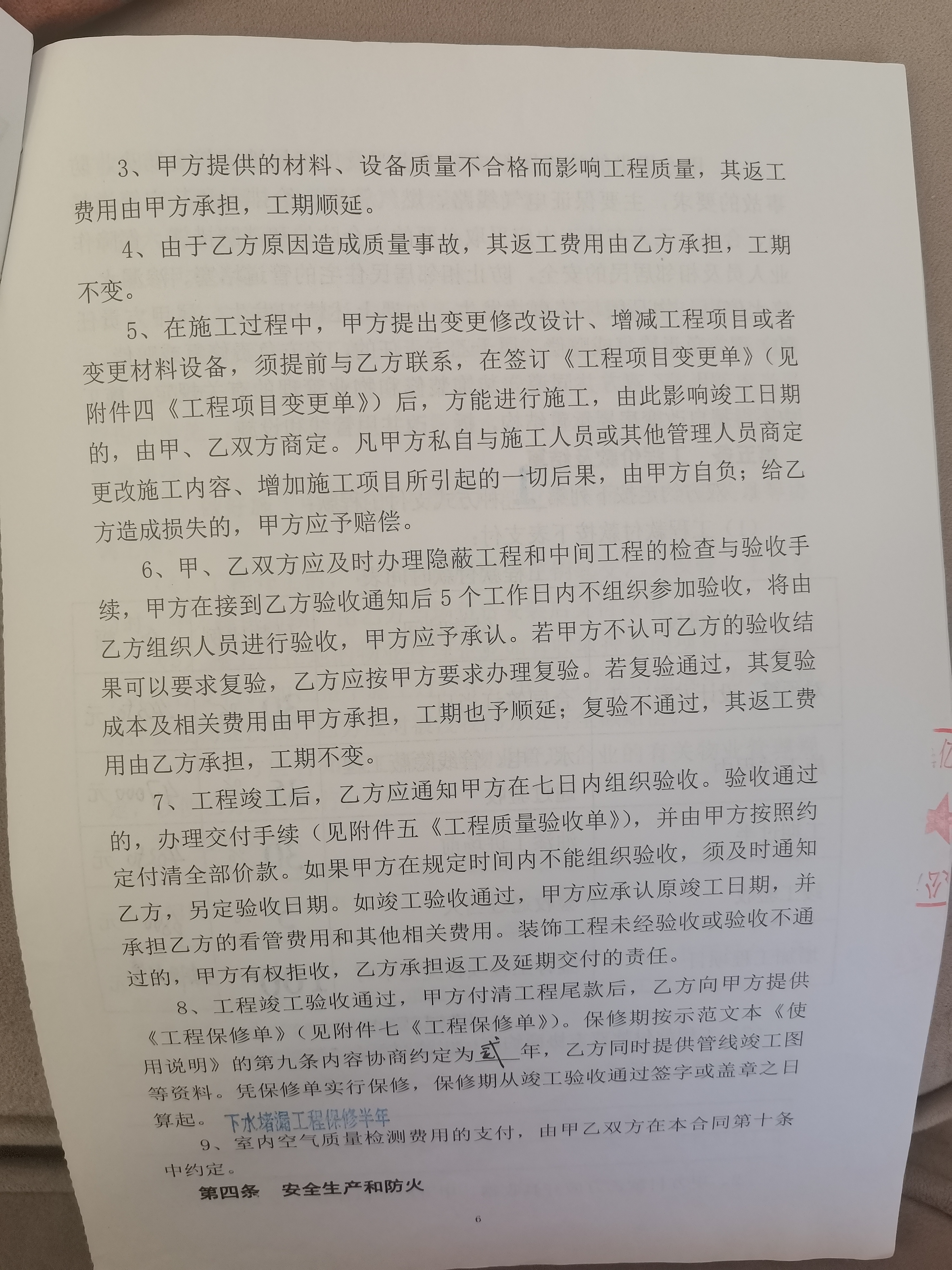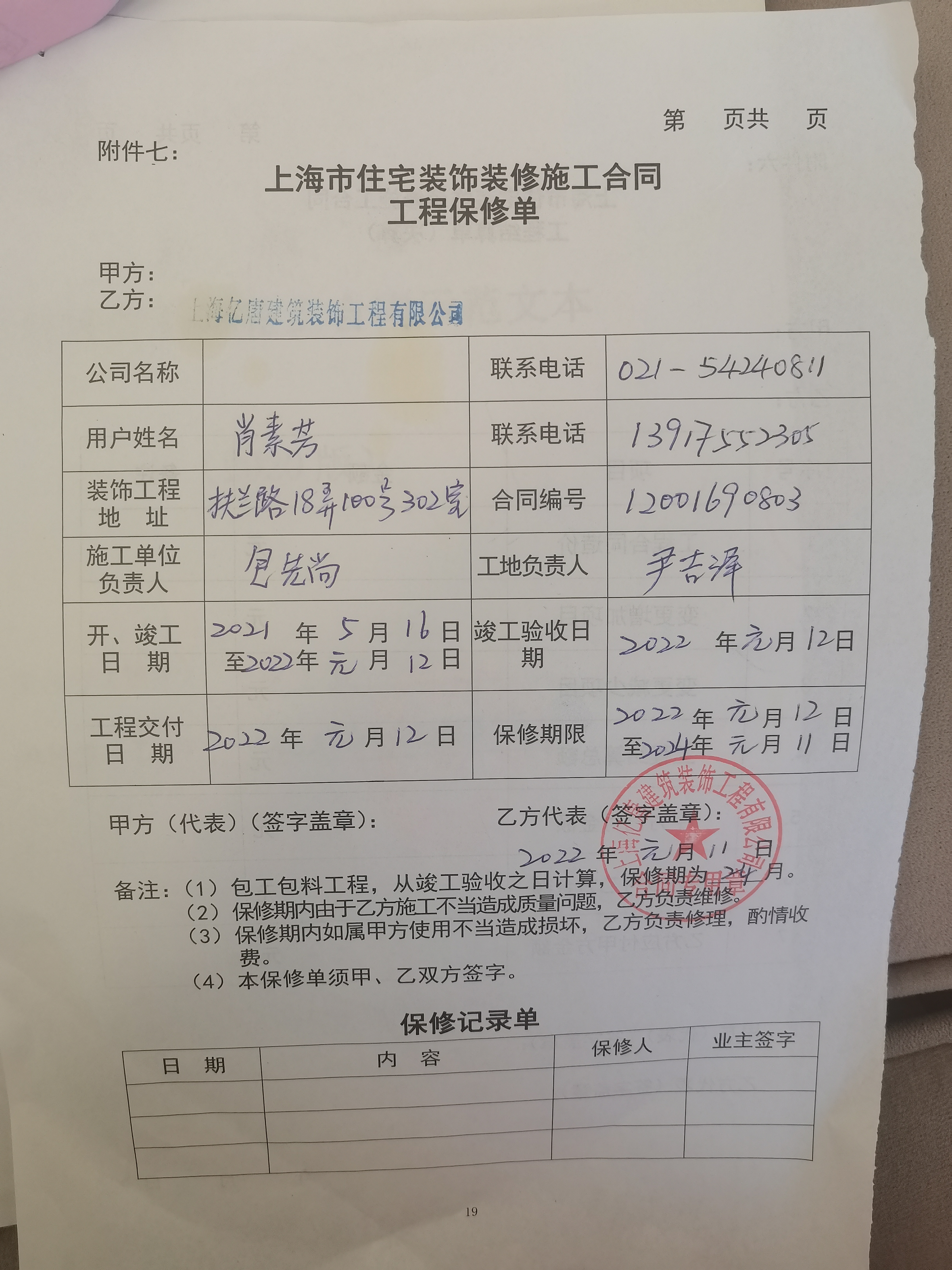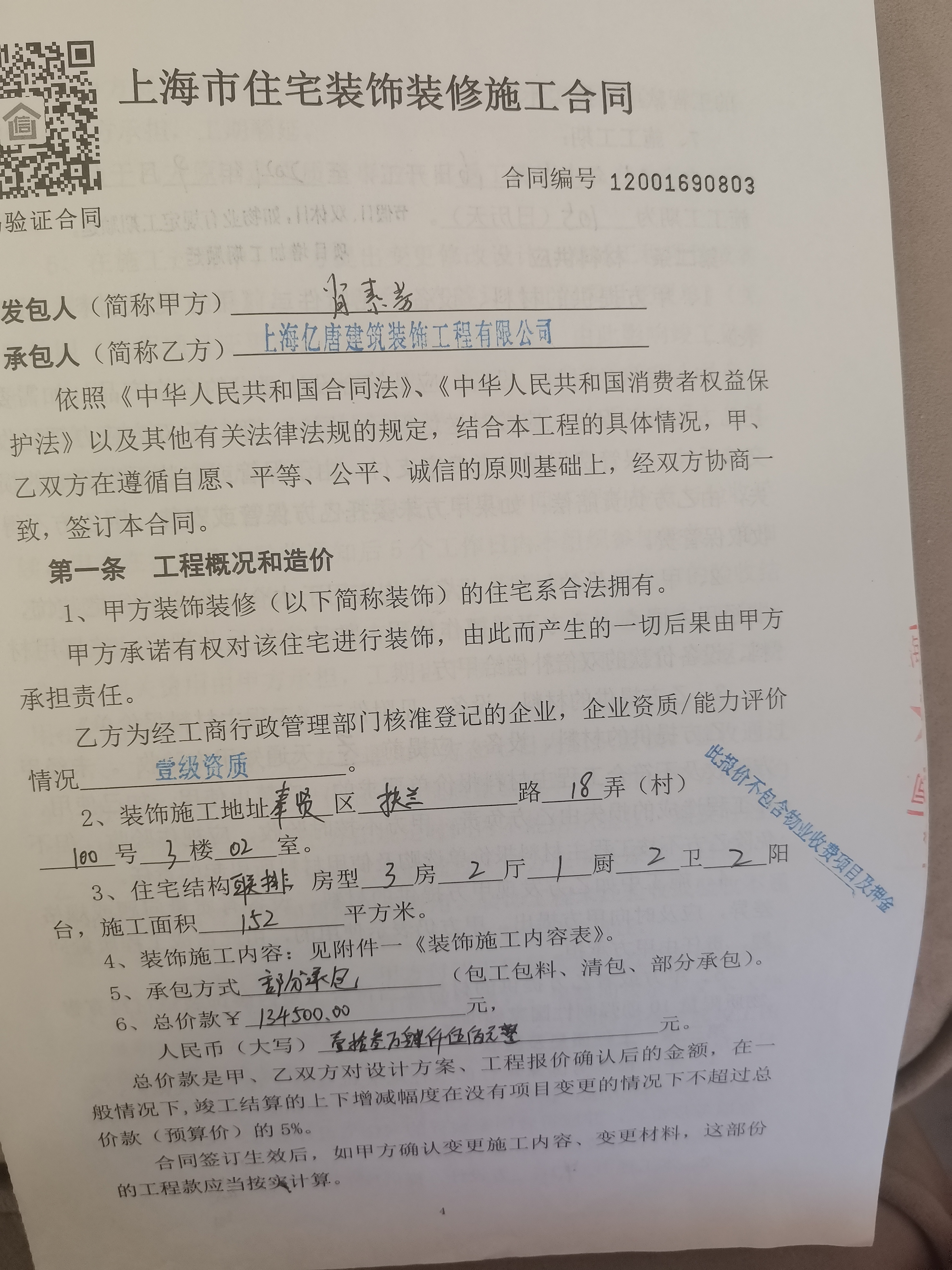 我是家住上海奉賢區(qū)扶蘭路18弄100號(hào)302的住戶,在2021年和5月和上海億唐建筑裝潢工程有限公司簽訂裝修設(shè)計(jì)和施工合同,于2022年1月11日完工。入住后一年不到時(shí)發(fā)現(xiàn)施工質(zhì)量問題如下: