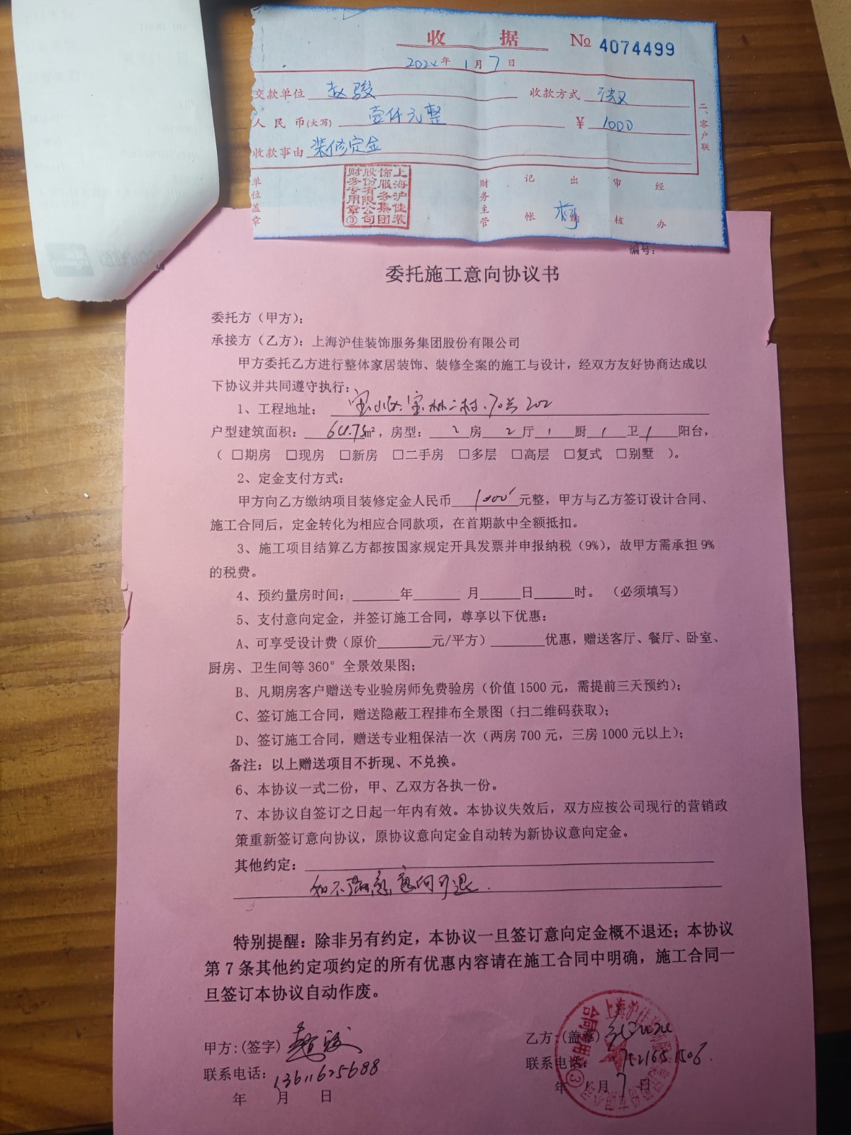 滬佳裝飾響應(yīng)速度快,及時(shí)處置,第二天就順利辦理退款手續(xù),企業(yè)誠信沒問題,多多包涵。